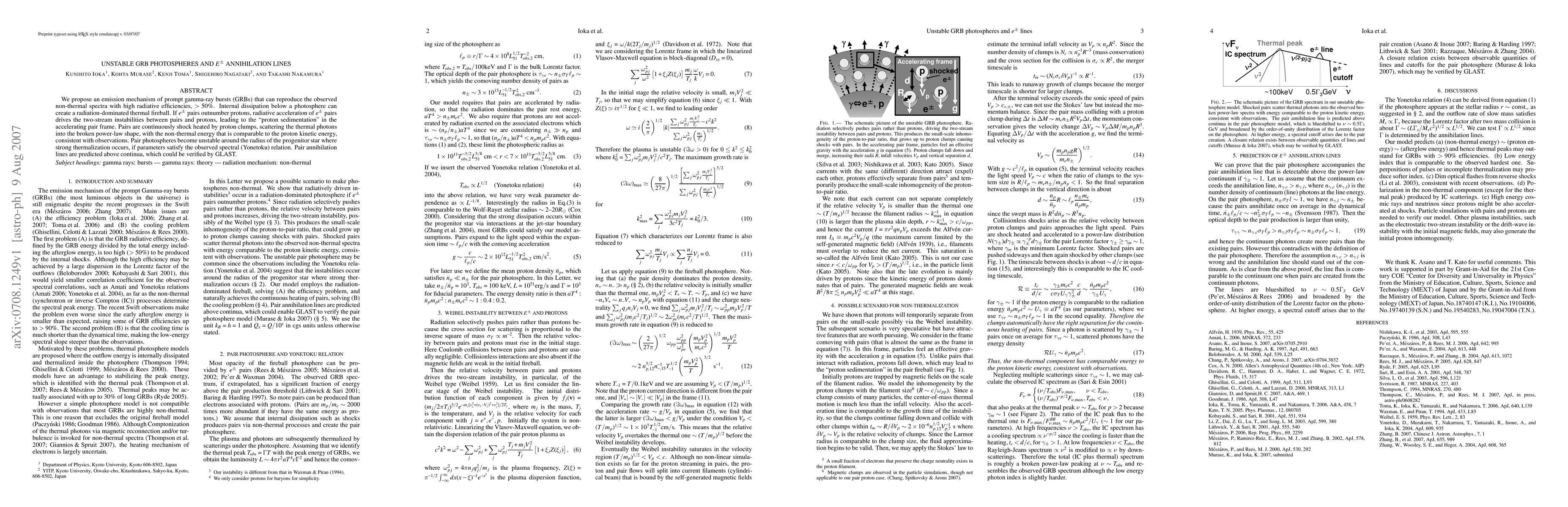 We propose an emission mechanism of prompt gamma-ray bursts (GRBs) that can reproduce the observed non-thermal spectra with high radiative efficiencies, >50%. Internal dissipation below a photosphere can create a radiation-dominated thermal fireball. If electron-positron pairs outnumber protons, radiative acceleration of pairs drives the two-stream instabilities between pairs and protons, leading to the ``proton sedimentation'' in the accelerating pair frame. Pairs are continuously shock heated by proton clumps, scattering the thermal photons into the broken power-law shape, with the non-thermal energy that is comparable to the proton kinetic energy, consistent with observations. Pair photospheres become unstable around the radius of the progenitor star where strong thermalization occurs, if parameters satisfy the observed spectral (Yonetoku) relation. Pair annihilation lines are predicted above continua, which could be verified by GLAST.