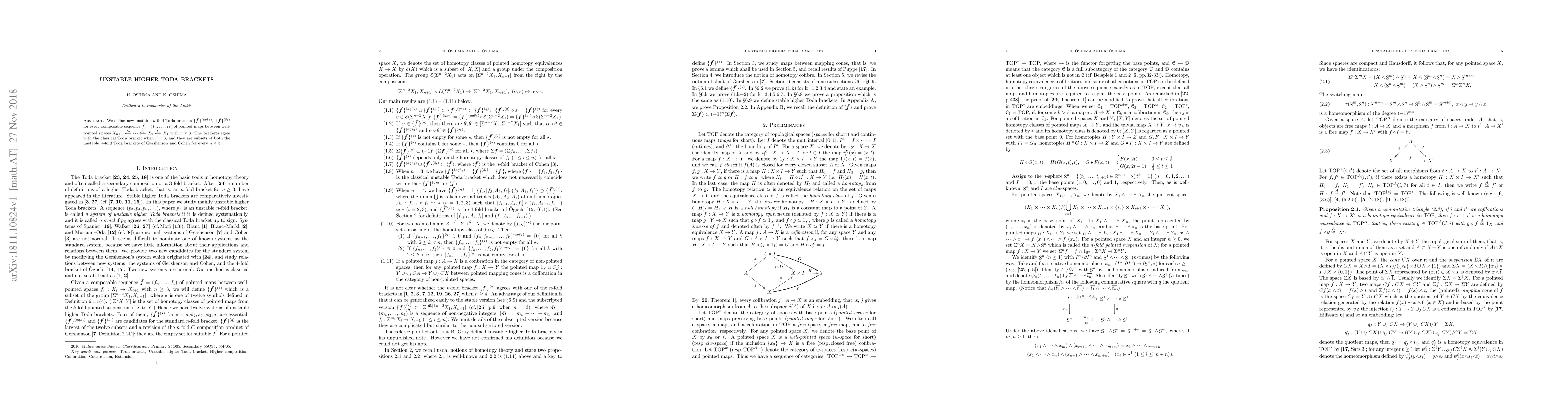 This paper introduces two new unstable n-fold Toda brackets for sequences of composable pointed maps between well-pointed spaces, generalizing the classical Toda bracket for n=3 and relating to existing unstable n-fold Toda brackets for n > 2.