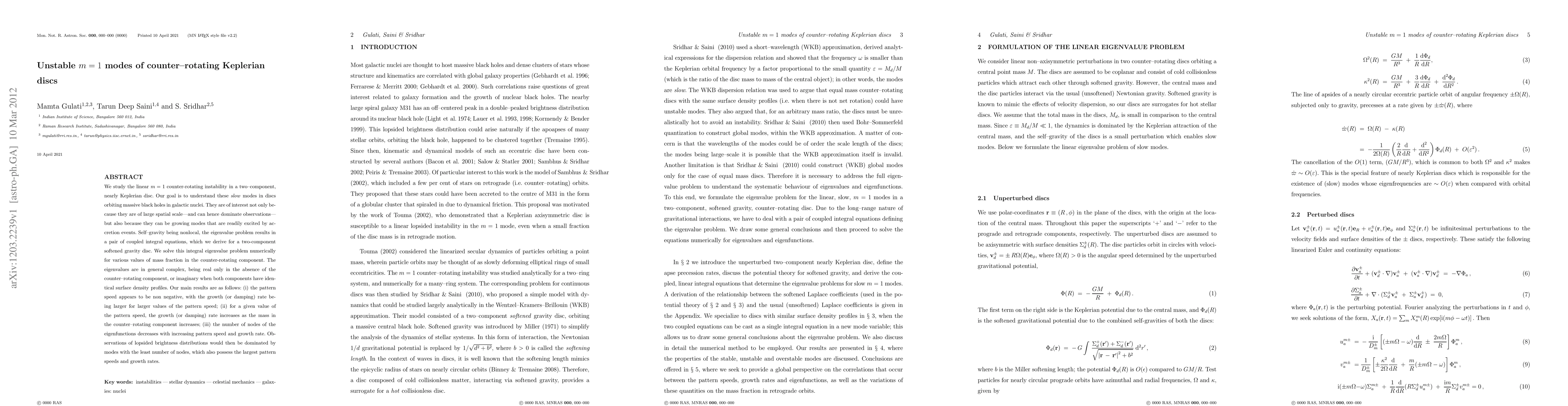 This research investigates the linear $m=1$ instability in counter-rotating, nearly Keplerian discs, focusing on slow modes in galactic nuclei discs around massive black holes. The study derives coupled integral equations for the self-gravity of a two-component disc and solves them numerically, finding that growth rates increase with both the pattern speed and the mass of the counter-rotating component, and that brighter lopsided observations are likely dominated by modes with higher pattern speeds and fewer nodes.