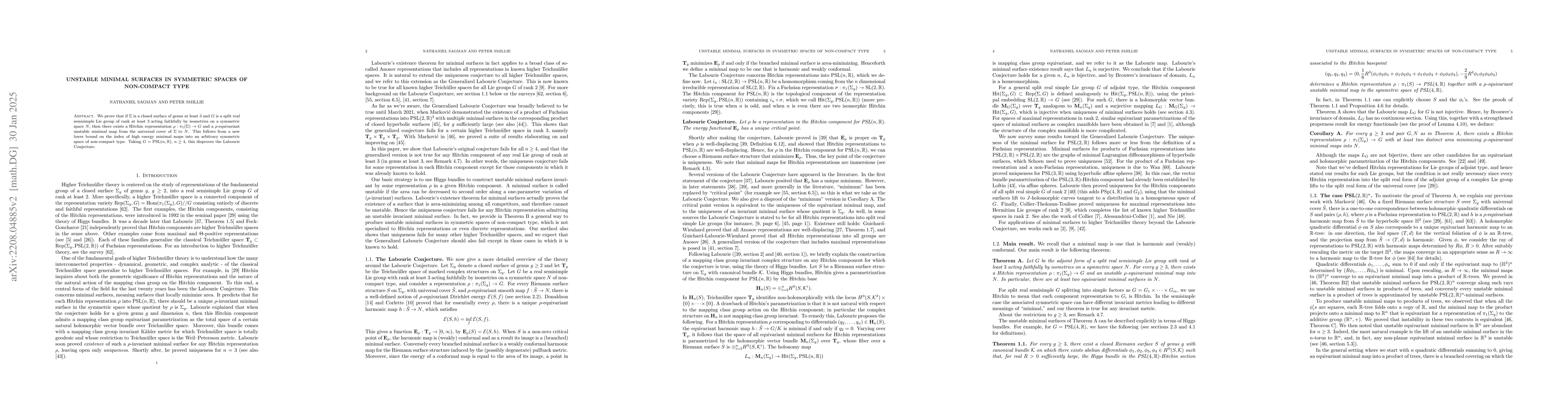 We prove that if $\Sigma$ is a closed surface of genus at least 3 and $G$ is a split real semisimple Lie group of rank at least $3$ acting faithfully by isometries on a symmetric space $N$, then there exists a Hitchin representation $\rho:\pi_1(\Sigma)\to G$ and a $\rho$-equivariant unstable minimal map from the universal cover of $\Sigma$ to $N$. This follows from a new lower bound on the index of high energy minimal maps into an arbitrary symmetric space of non-compact type. Taking $G=\mathrm{PSL}(n,\mathbb{R})$, $n\geq 4$, this disproves the Labourie conjecture.