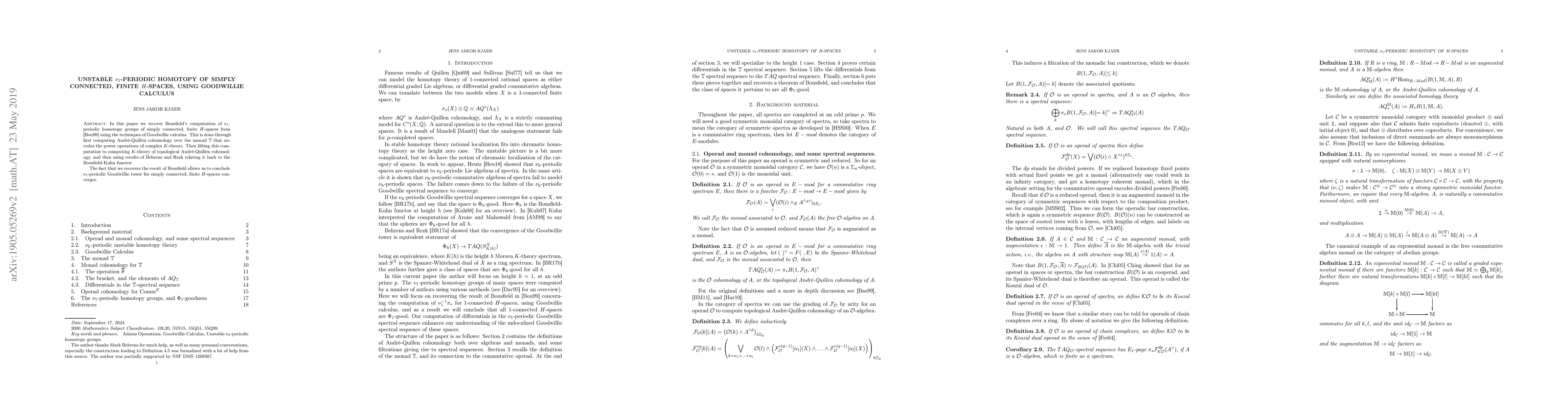 This paper uses Goodwillie calculus to recompute Bousfield's $\nu_1$-periodic homotopy groups for simply connected, finite $H$-spaces, leveraging André-Quillen cohomology and connections to complex $K$-theory. The convergence of the $\nu_1$-periodic Goodwillie tower for these spaces is thereby established.