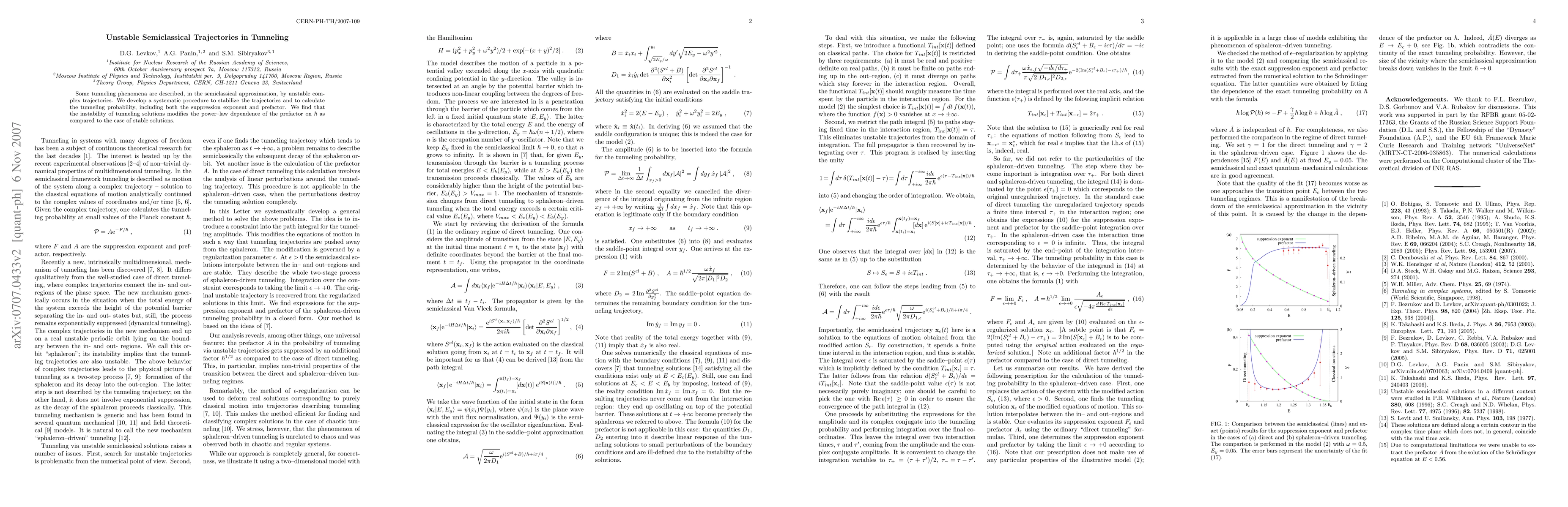 This paper develops a method to stabilize unstable semiclassical trajectories in tunneling phenomena, calculating the tunneling probability, including the suppression exponent and prefactor. It reveals that the instability alters the power-law dependence of the prefactor on h compared to stable solutions.
