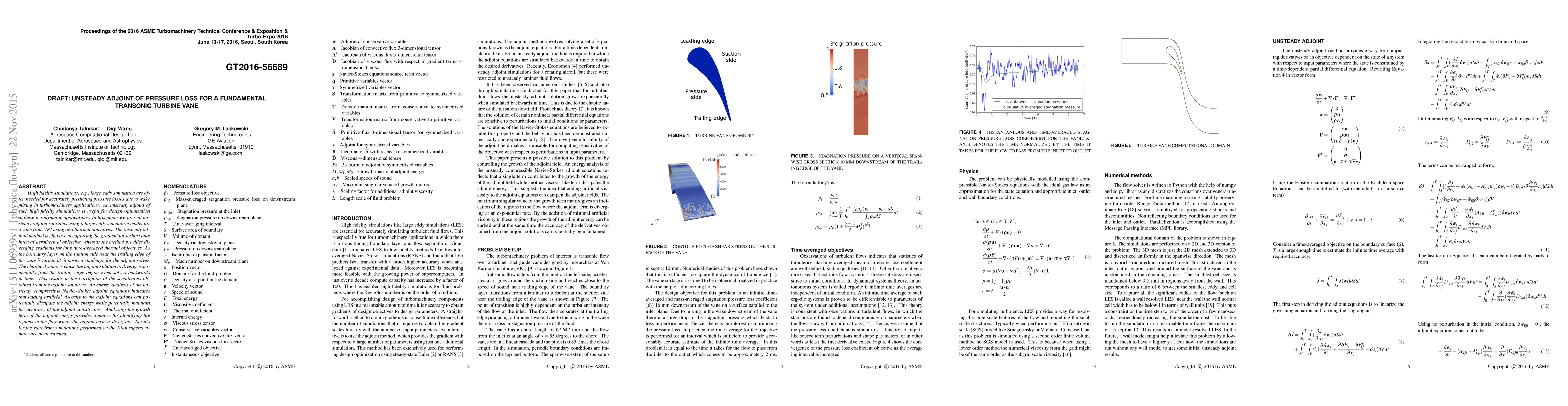 This research develops an unsteady adjoint method for optimizing high-fidelity simulations of pressure losses in transonic turbine vanes, highlighting its effectiveness for short-term aerothermal objectives but challenges with long-term averages due to turbulent boundary layer dynamics. The study suggests artificial viscosity as a potential solution to maintain adjoint accuracy and stability.