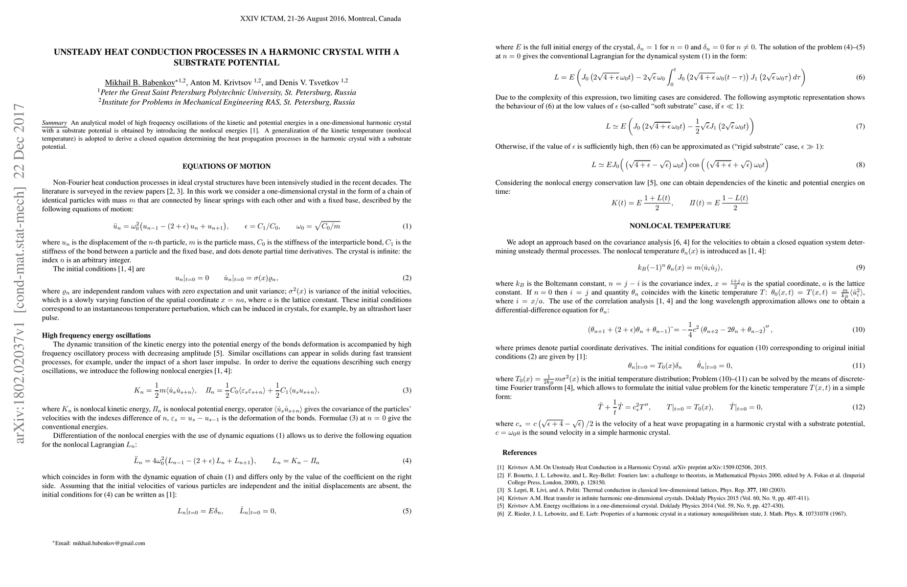 This paper develops an analytical model for high-frequency oscillations in kinetic and potential energies within a one-dimensional harmonic crystal with a substrate potential, utilizing nonlocal energies and a generalized kinetic temperature to derive a closed equation for heat propagation.