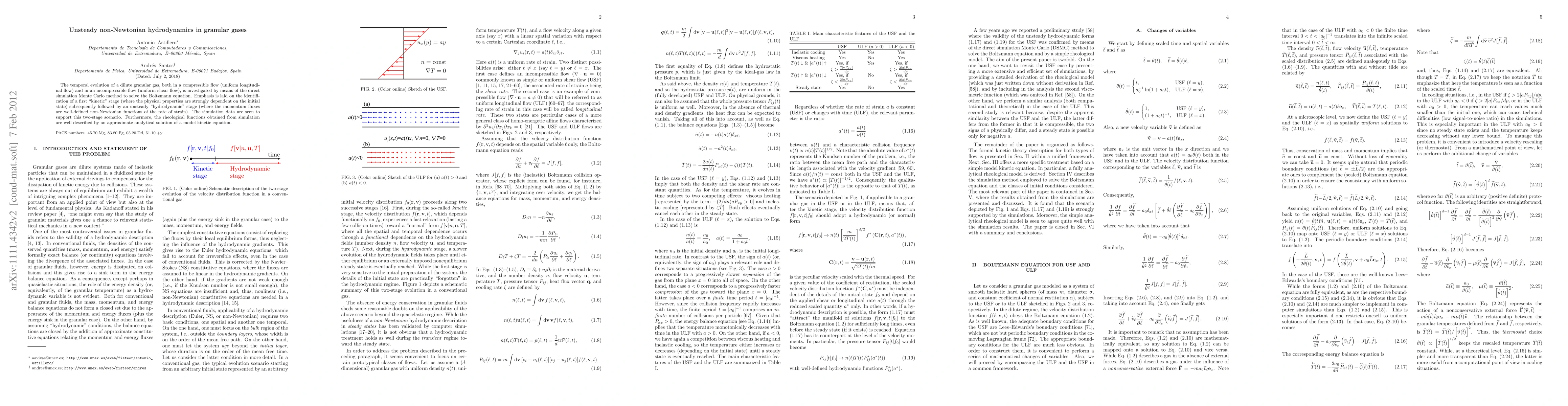 This paper investigates the temporal evolution of a dilute granular gas using the direct simulation Monte Carlo method, identifying two stages: an initial kinetic stage and a subsequent unsteady hydrodynamic stage with non-Newtonian momentum fluxes. The findings support a two-stage scenario and are well described by an analytical solution of a model kinetic equation.