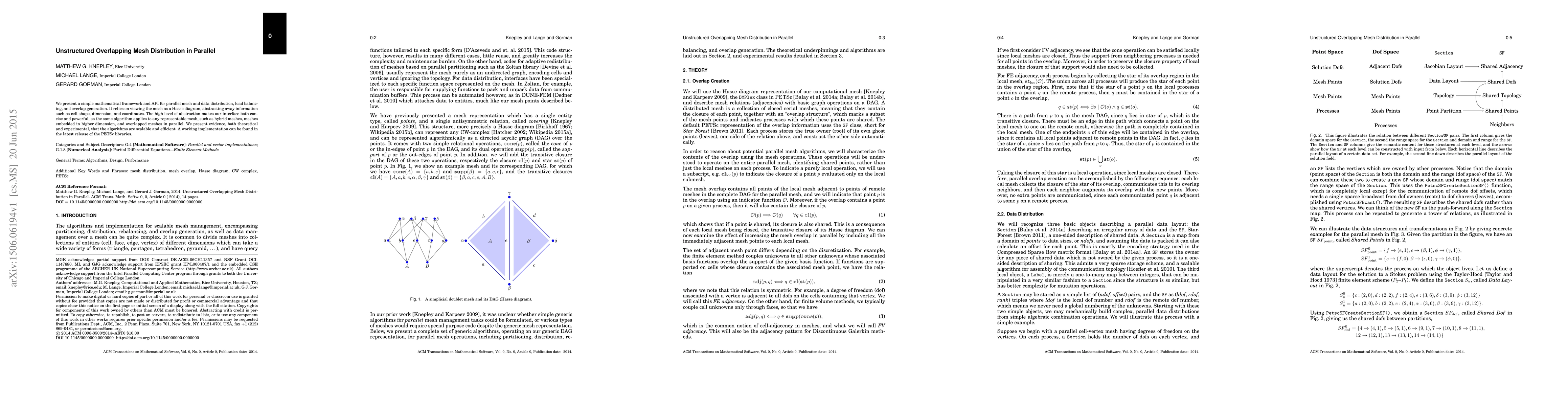 We present a simple mathematical framework and API for parallel mesh and data distribution, load balancing, and overlap generation. It relies on viewing the mesh as a Hasse diagram, abstracting away information such as cell shape, dimension, and coordinates. The high level of abstraction makes our interface both concise and powerful, as the same algorithm applies to any representable mesh, such as hybrid meshes, meshes embedded in higher dimension, and overlapped meshes in parallel. We present evidence, both theoretical and experimental, that the algorithms are scalable and efficient. A working implementation can be found in the latest release of the PETSc libraries.