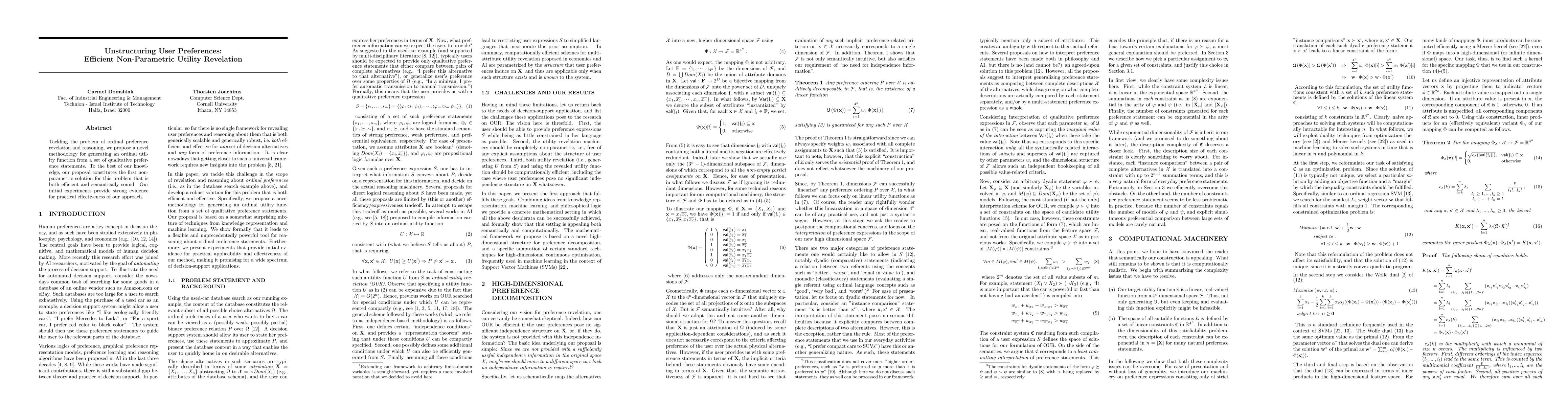 Researchers developed a novel approach to generate an ordinal utility function from qualitative preference statements, providing a nonparametric solution that is both efficient and semantically sound.