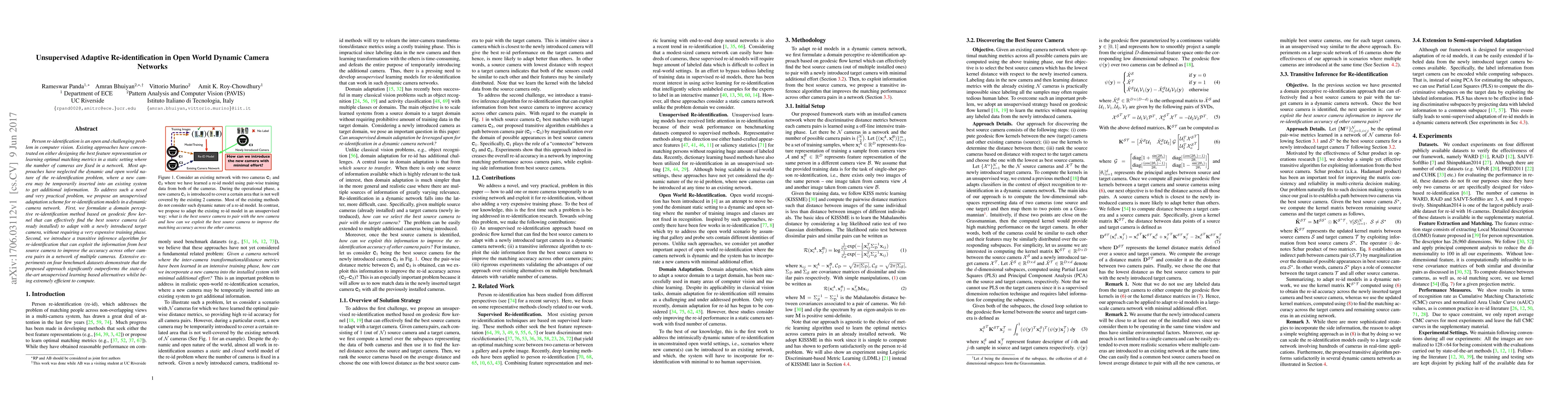 This paper proposes an unsupervised adaptive re-identification method for dynamic camera networks, addressing the open world and dynamic nature of the problem. It uses a geodesic flow kernel for domain-specific adaptation and a transitive inference algorithm to improve accuracy across multiple camera pairs, outperforming existing unsupervised methods.