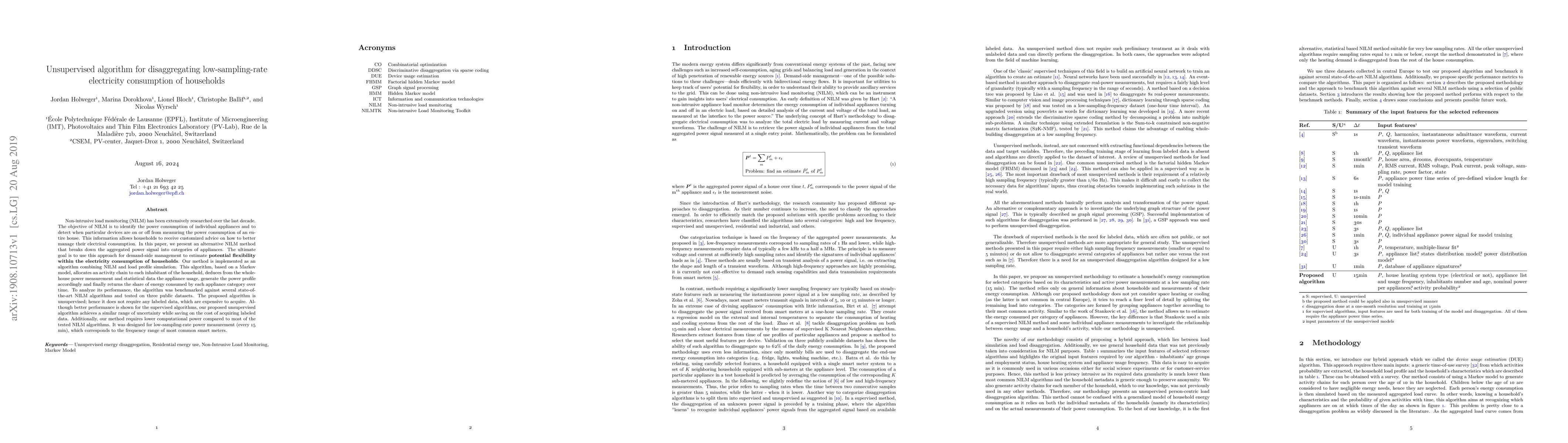 Non-intrusive load monitoring (NILM) has been extensively researched over the last decade. The objective of NILM is to identify the power consumption of individual appliances and to detect when particular devices are on or off from measuring the power consumption of an entire house. This information allows households to receive customized advice on how to better manage their electrical consumption. In this paper, we present an alternative NILM method that breaks down the aggregated power signal into categories of appliances. The ultimate goal is to use this approach for demand-side management to estimate potential flexibility within the electricity consumption of households. Our method is implemented as an algorithm combining NILM and load profile simulation. This algorithm, based on a Markov model, allocates an activity chain to each inhabitant of the household, deduces from the whole-house power measurement and statistical data the appliance usage, generate the power profile accordingly and finally returns the share of energy consumed by each appliance category over time. To analyze its performance, the algorithm was benchmarked against several state-of-the-art NILM algorithms and tested on three public datasets. The proposed algorithm is unsupervised; hence it does not require any labeled data, which are expensive to acquire. Although better performance is shown for the supervised algorithms, our proposed unsupervised algorithm achieves a similar range of uncertainty while saving on the cost of acquiring labeled data. Additionally, our method requires lower computational power compared to most of the tested NILM algorithms. It was designed for low-sampling-rate power measurement (every 15 min), which corresponds to the frequency range of most common smart meters.