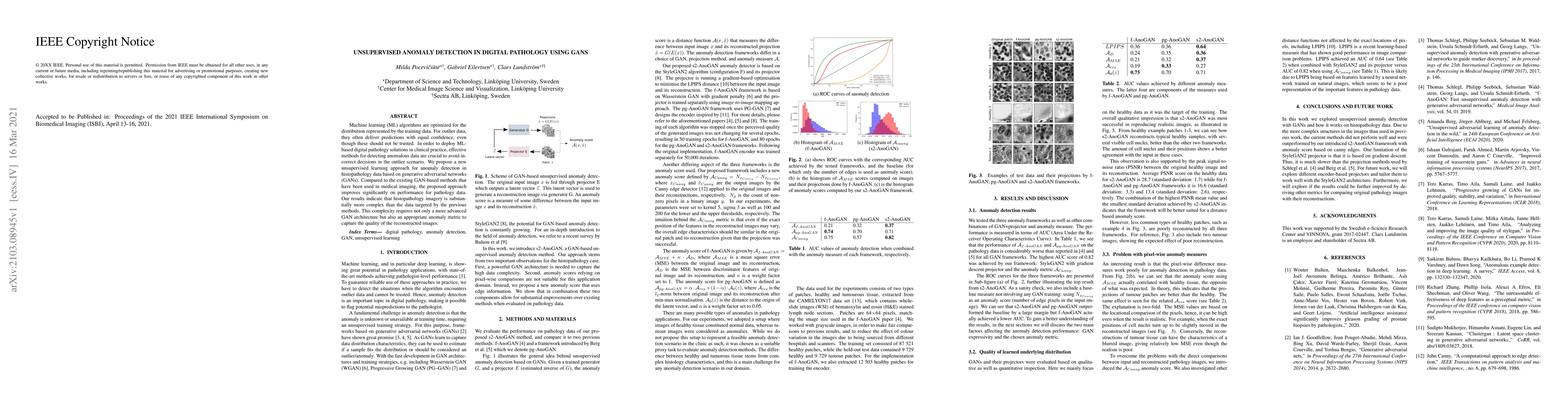 The research proposes a new unsupervised anomaly detection approach in histopathology data using Generative Adversarial Networks (GANs), called s2-AnoGAN. It compares this method with f-AnoGAN and pg-AnoGAN, evaluating their performance using Area Under the Receiver Operating Characteristics Curve (AUC) on pathology data.