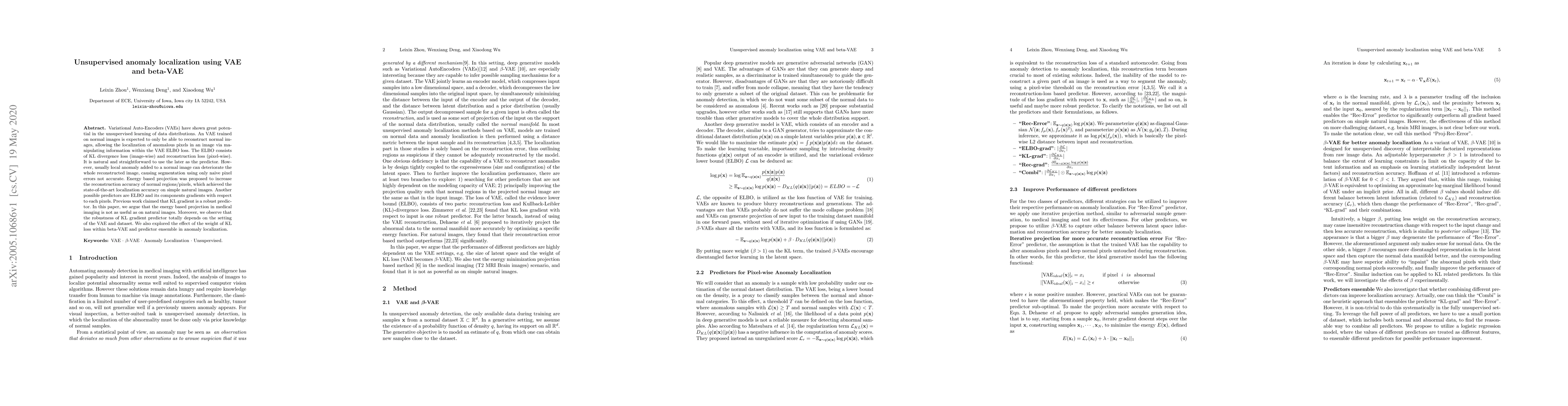 This paper investigates unsupervised anomaly localization using VAE and beta-VAE, finding that while energy-based projection works well for natural images, it is less effective for medical imaging. The study also highlights the dependency of KL gradient predictor robustness on VAE settings and dataset, and explores the impact of KL loss weight in beta-VAE and predictor ensemble on localization accuracy.