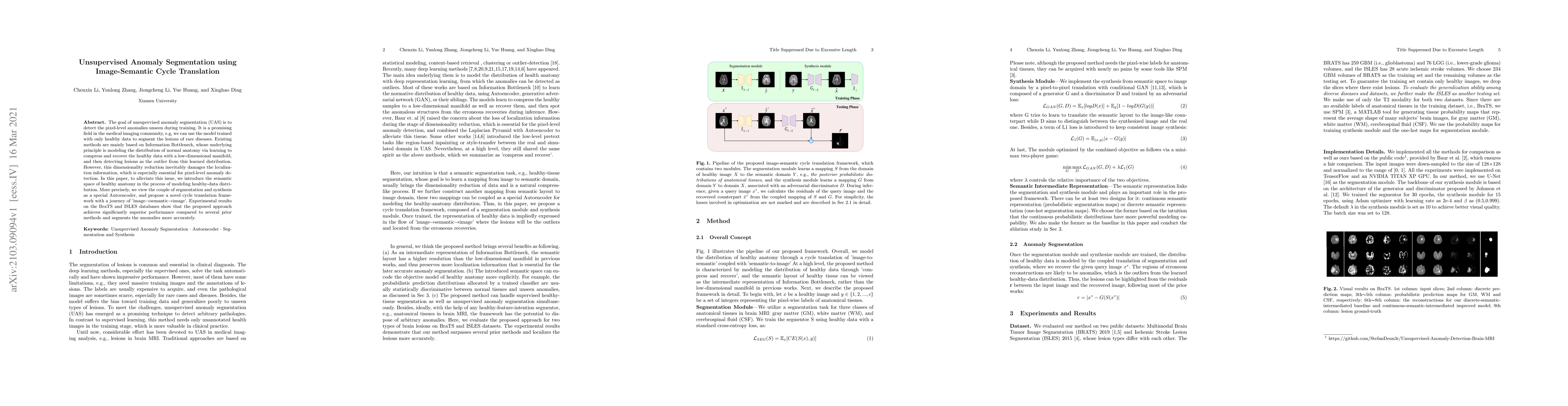 A new approach for unsupervised anomaly segmentation uses a cycle translation framework to model healthy anatomy in image data, achieving better performance than existing methods on medical imaging datasets.