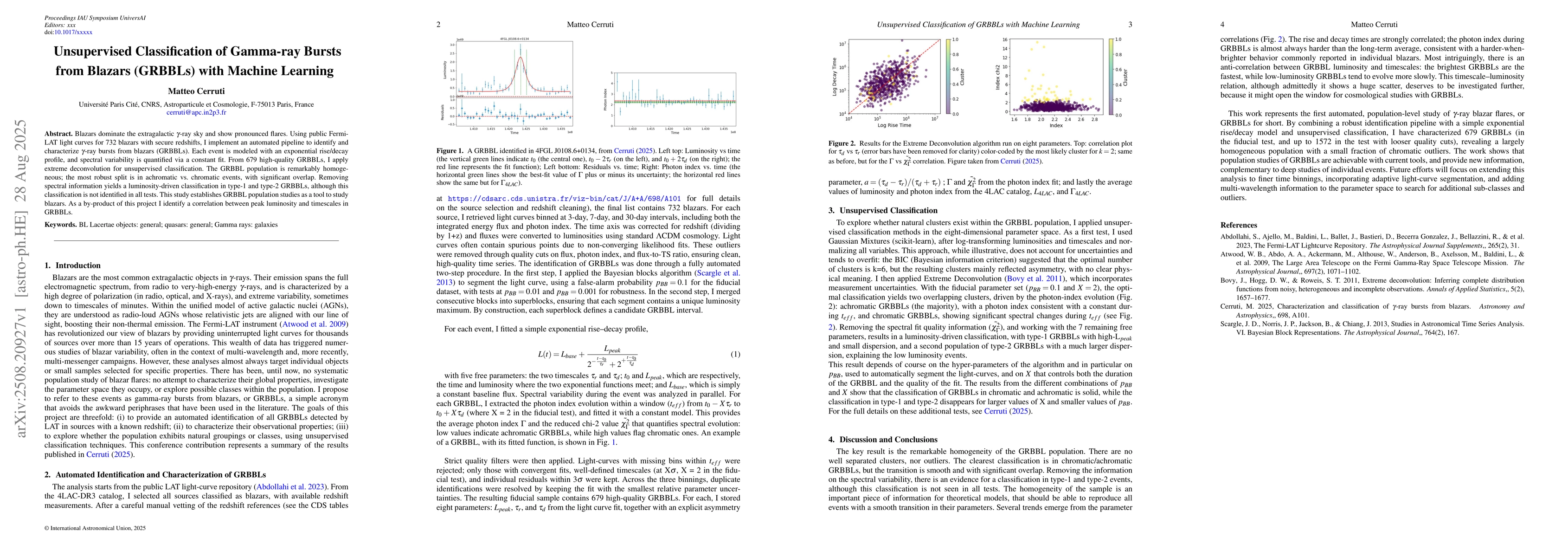 Blazars dominate the extragalactic $\gamma$-ray sky and show pronounced flares. Using public Fermi-LAT light curves for 732 blazars with secure redshifts, I implement an automated pipeline to identify and characterize $\gamma$-ray bursts from blazars (GRBBLs). Each event is modeled with an exponential rise/decay profile, and spectral variability is quantified via a constant fit. From 679 high-quality GRBBLs, I apply extreme deconvolution for unsupervised classification. The GRBBL population is remarkably homogeneous; the most robust split is in achromatic vs. chromatic events, with significant overlap. Removing spectral information yields a luminosity-driven classification in type-1 and type-2 GRBBLs, although this classification is not identified in all tests. This study establishes GRBBL population studies as a tool to study blazars. As a by-product of this project I identify a correlation between peak luminosity and timescales in GRBBLs.