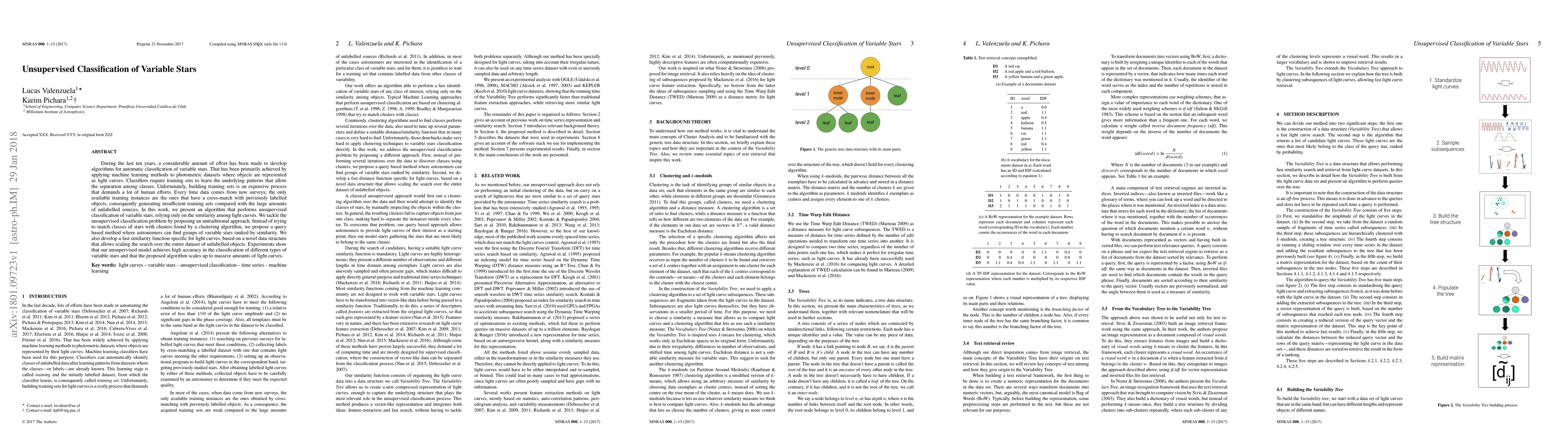 This paper presents an unsupervised algorithm for classifying variable stars based on light curve similarity, eliminating the need for extensive training sets. The method uses a query-based approach and a novel similarity function to efficiently group variable stars, demonstrating high accuracy and scalability for large datasets.