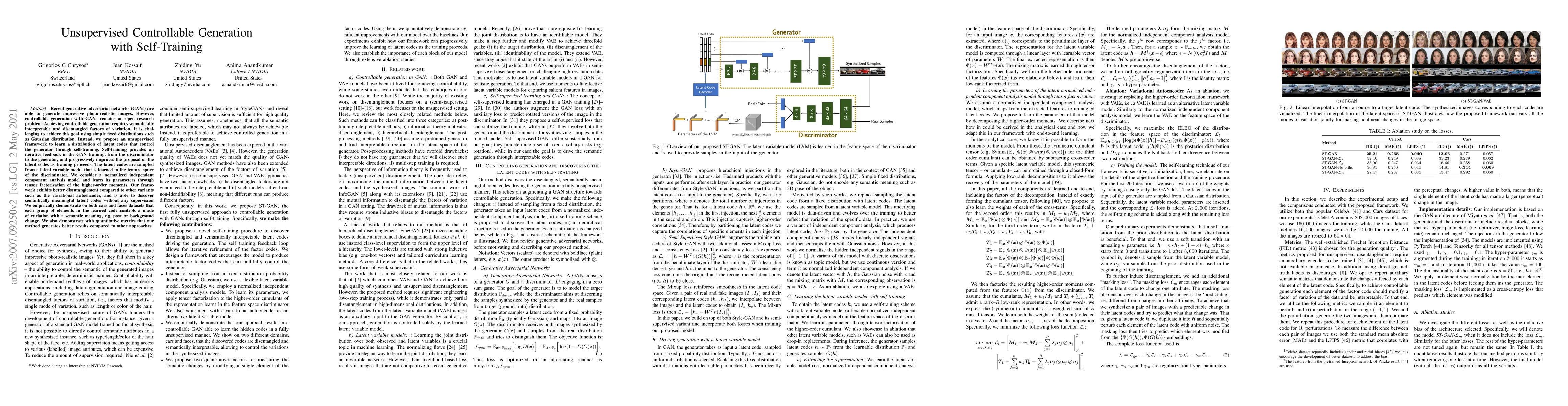 A new framework for unsupervised controllable generation using self-training improves upon traditional GANs by discovering semantically meaningful latent codes without supervision, leading to better results in image generation.