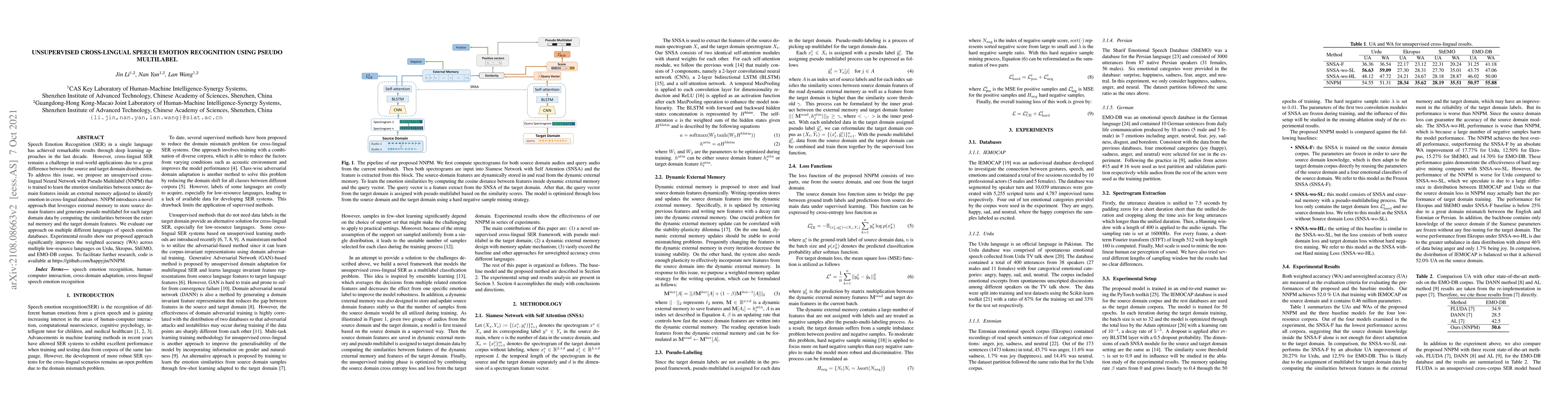 This paper proposes an unsupervised cross-lingual Neural Network with Pseudo Multilabel (NNPM) for speech emotion recognition, leveraging external memory to learn emotion similarities across languages. Experimental results show significant improvements in accuracy across multiple low-resource languages.