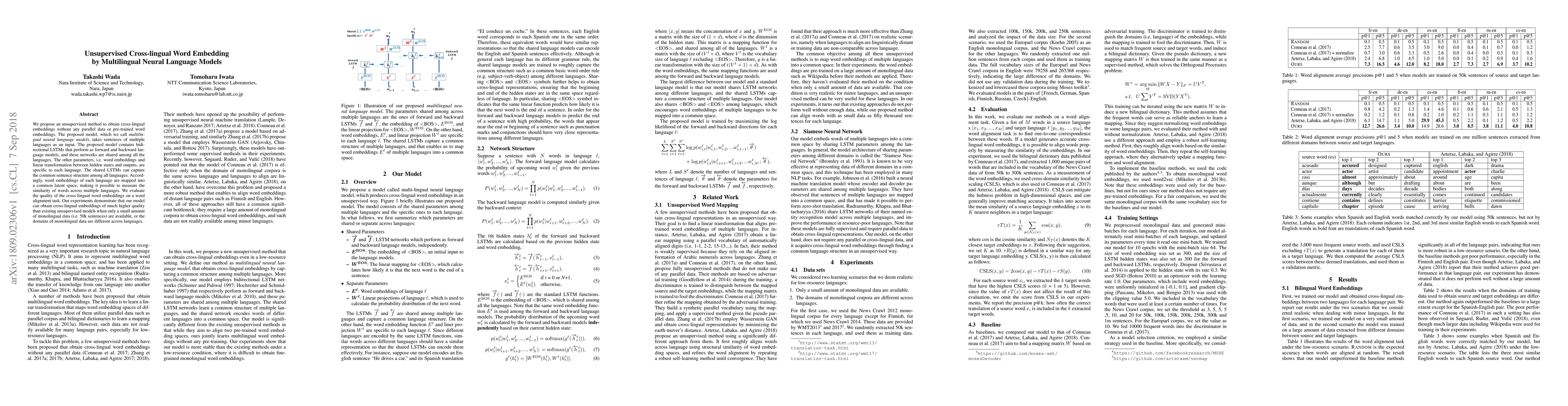 This research proposes an unsupervised method for generating high-quality cross-lingual word embeddings using multilingual neural language models, which leverage shared bidirectional LSTMs across languages and language-specific embeddings. The model achieves superior performance compared to existing methods, even with limited or domain-diverse monolingual data.