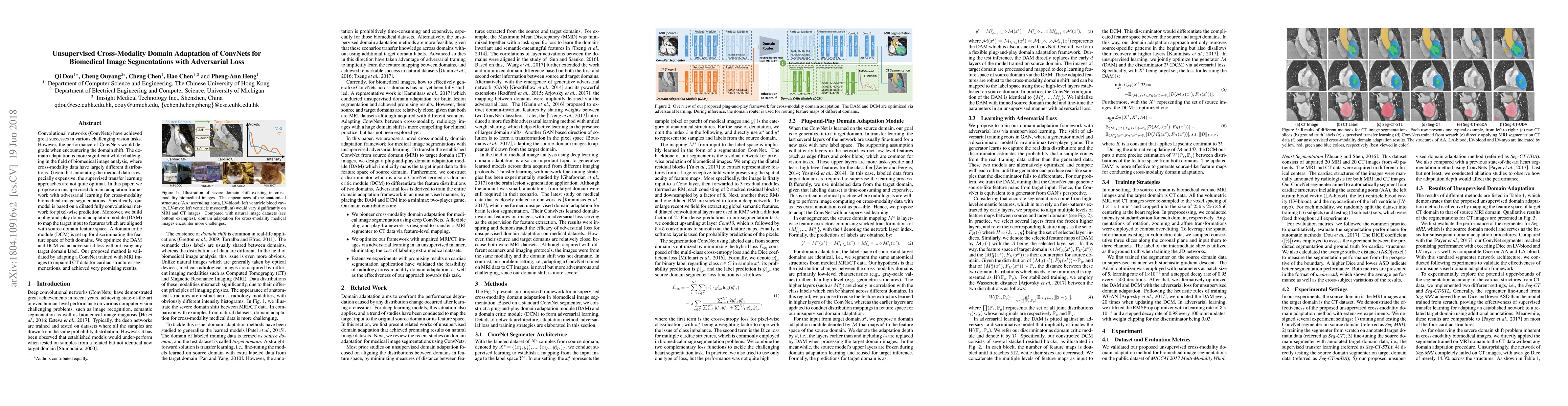 This paper proposes an unsupervised domain adaptation framework using adversarial learning for cross-modality biomedical image segmentation, specifically adapting MRI-trained ConvNets to unpaired CT data for cardiac segmentation. The method employs a dilated fully convolutional network and a domain adaptation module, optimized via adversarial loss without target domain labels.
