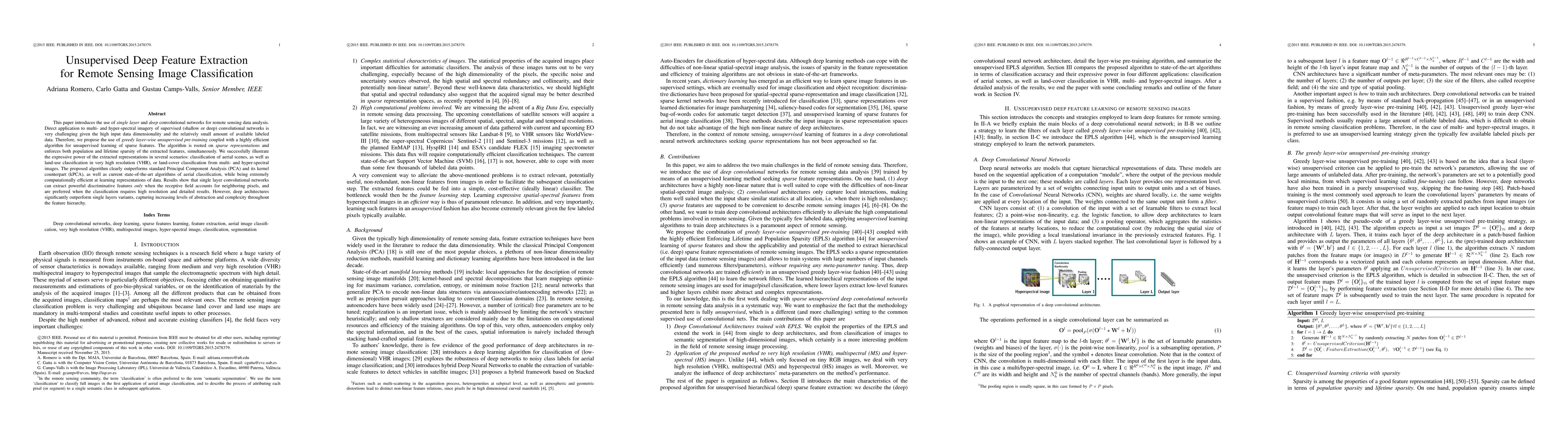 This paper proposes an unsupervised deep feature extraction algorithm for remote sensing images, achieving better performance than traditional methods and being computationally efficient.