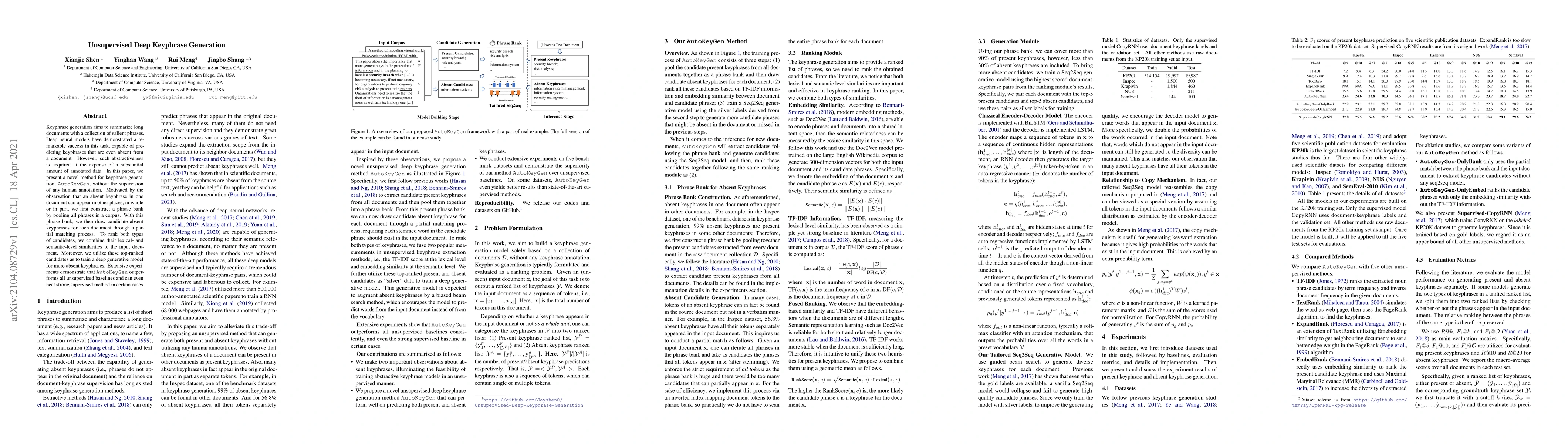 This paper introduces AutoKeyGen, an unsupervised deep keyphrase generation method that constructs a phrase bank from a corpus to generate salient keyphrases without human annotation. It outperforms unsupervised baselines and can surpass supervised methods in certain scenarios.