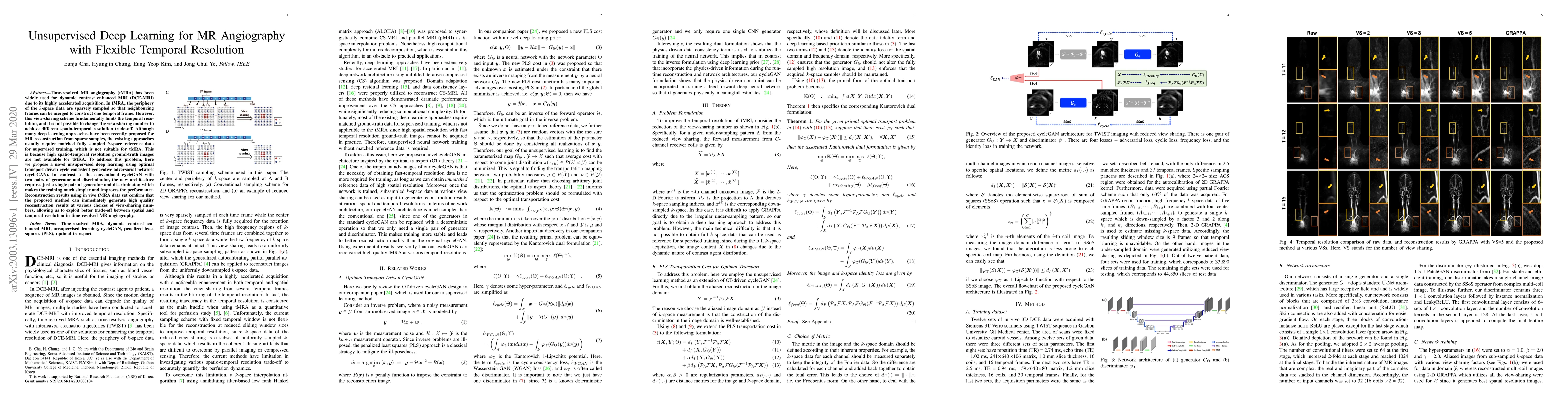 This paper proposes an unsupervised deep learning method using an optimal transport driven cycle-consistent generative adversarial network (cycleGAN) for reconstructing time-resolved MR angiography (tMRA) with flexible temporal resolution. The new architecture simplifies training and improves performance, enabling better trade-offs between spatial and temporal resolution without requiring fully sampled k-space reference data.