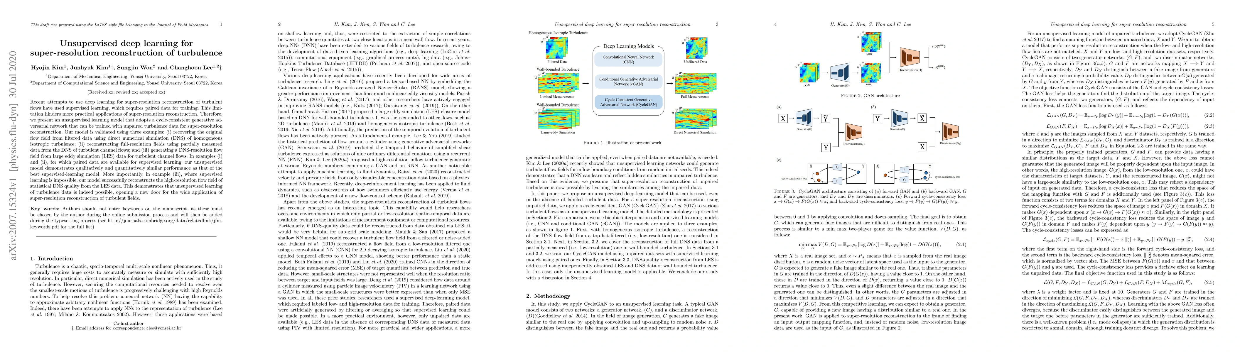 This paper introduces an unsupervised deep learning model using a cycle-consistent generative adversarial network for super-resolution reconstruction of turbulent flows, eliminating the need for paired training data. The model successfully reconstructs high-resolution turbulence fields from unpaired data, demonstrating practical applications where supervised learning is not feasible.