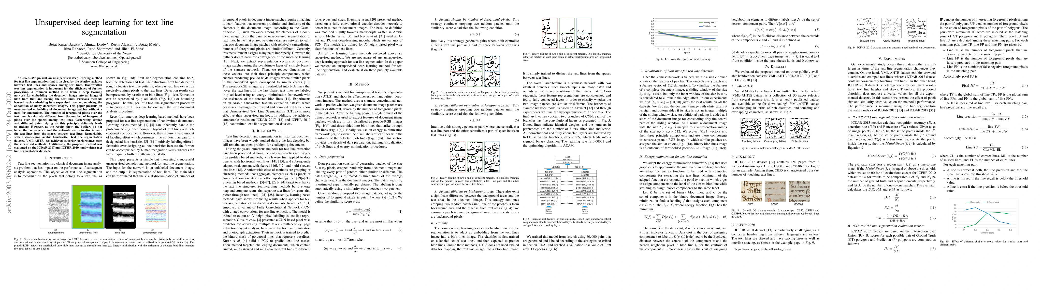 This paper introduces an unsupervised deep learning approach for text line segmentation based on the relative variance between text lines and spaces, achieving superior performance compared to supervised methods on multiple datasets, including a challenging Arabic handwritten text dataset.
