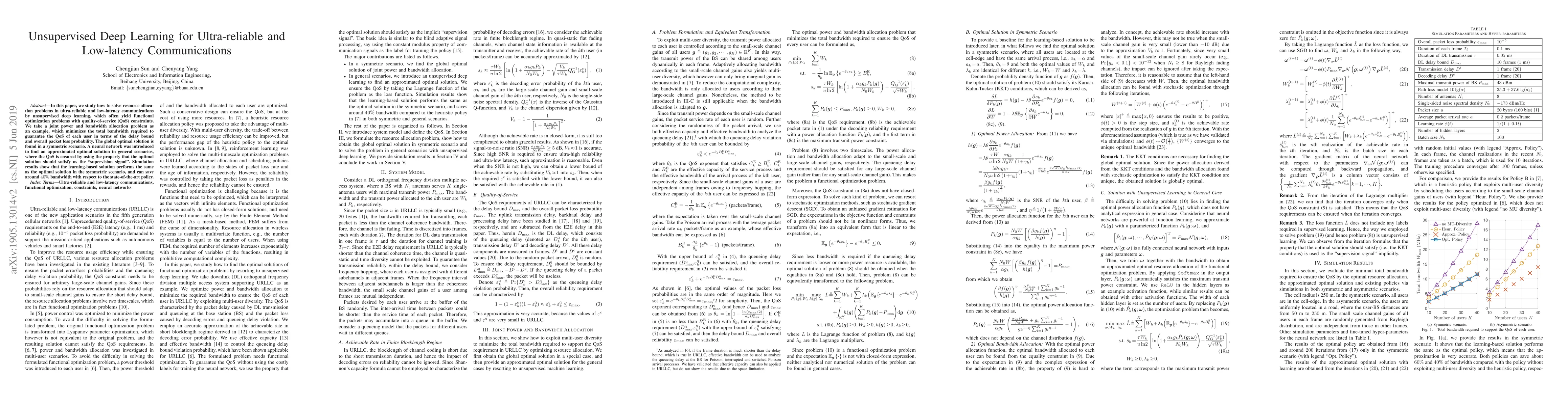 This paper explores unsupervised deep learning for optimizing resource allocation in ultra-reliable and low-latency communications, focusing on minimizing bandwidth to meet QoS constraints. A neural network approximates the optimal solution in non-symmetric scenarios, achieving similar performance to the global optimal solution and saving around 40% bandwidth compared to existing policies.