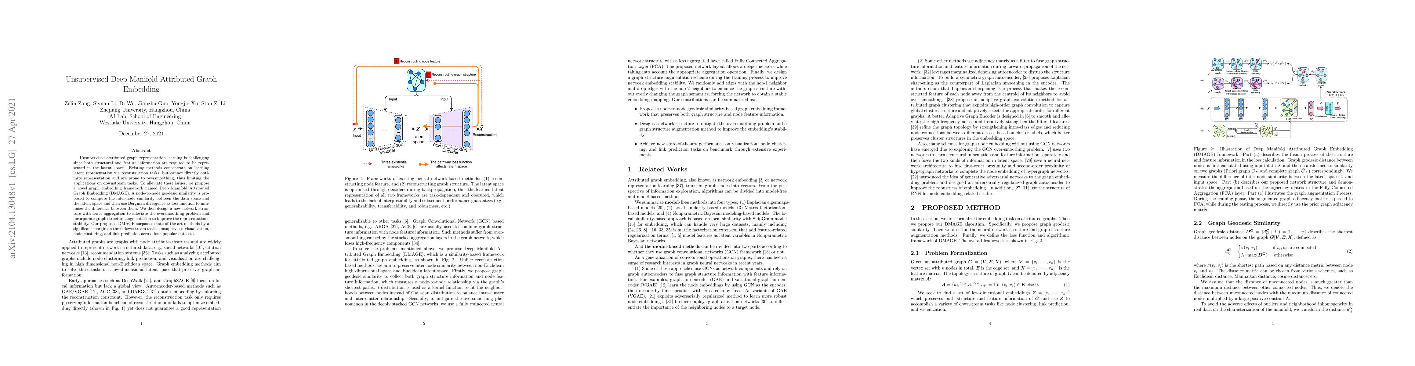 The paper proposes DMAGE, a novel unsupervised graph embedding framework that uses geodesic similarity and Bergman divergence to optimize representation while minimizing oversmoothing and improving stability through graph augmentation. DMAGE outperforms existing methods on tasks like visualization, clustering, and link prediction.