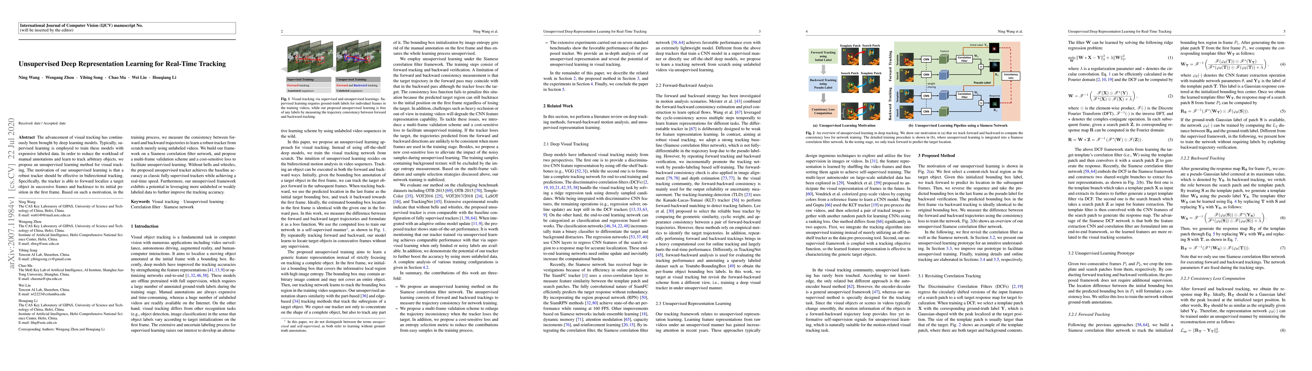 This paper proposes an unsupervised deep learning method for real-time visual tracking using unlabeled videos, achieving performance comparable to supervised trackers by learning bidirectional tracking consistency. The framework employs a Siamese correlation filter network with a multi-frame validation scheme and cost-sensitive loss.