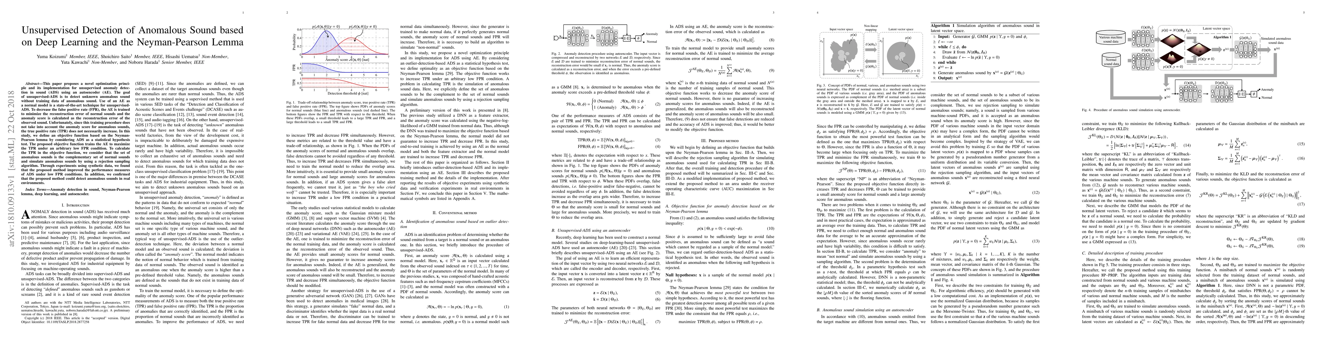 This paper introduces a novel unsupervised anomaly detection method for sound using an autoencoder and the Neyman-Pearson lemma to maximize true positive rates while minimizing false positives, demonstrating improved performance in both synthetic and real-world data.