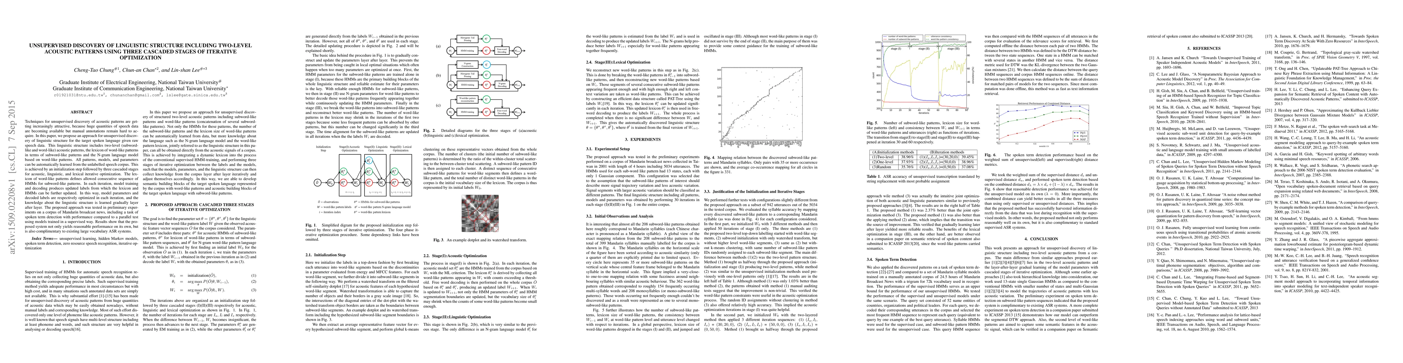 This paper proposes an unsupervised method for discovering linguistic structure in spoken language, including two-level acoustic patterns and an N-gram language model, using three cascaded stages of iterative optimization. Preliminary experiments on Mandarin broadcast news show promising results, indicating the method's potential to complement existing large vocabulary automatic speech recognition systems.
