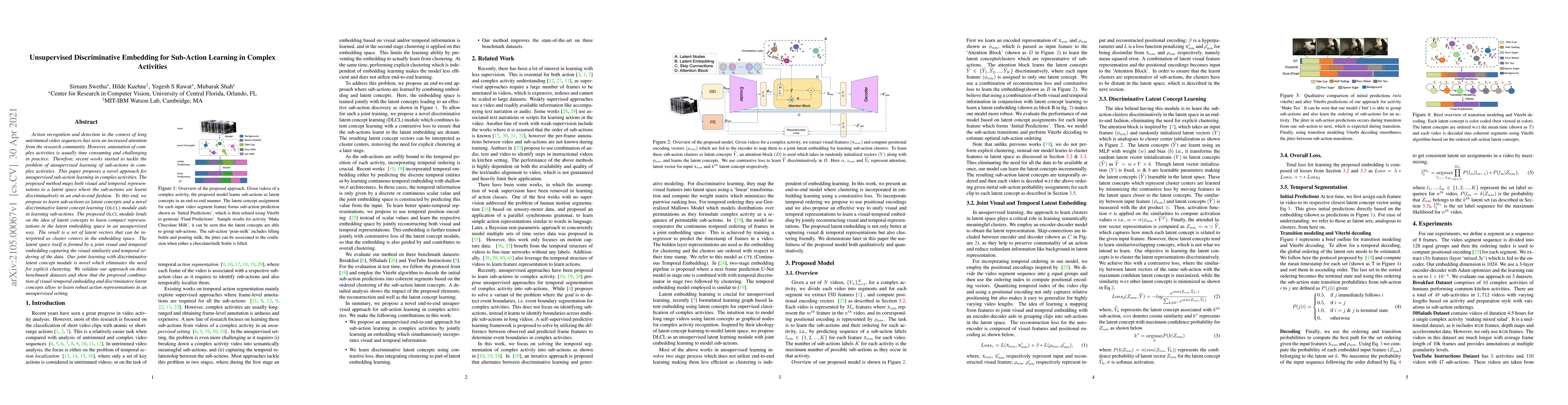This paper proposes a novel approach for unsupervised sub-action learning in complex activities, using a discriminative latent concept learning module to learn compact representations of action sub-actions from visual and temporal data.