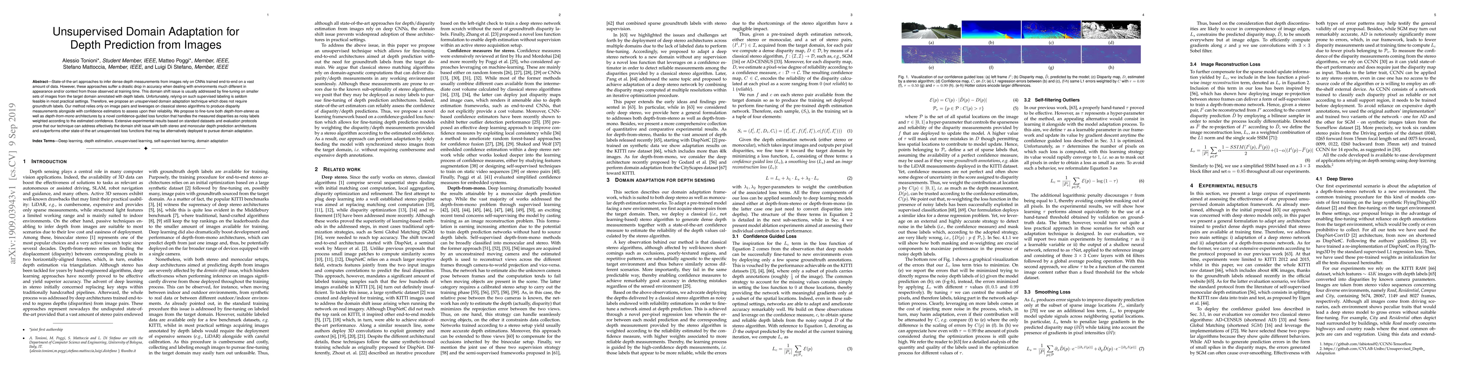 This paper proposes an unsupervised domain adaptation technique for depth prediction from images that leverages classical stereo algorithms and confidence estimators to address the domain shift issue without requiring groundtruth labels.