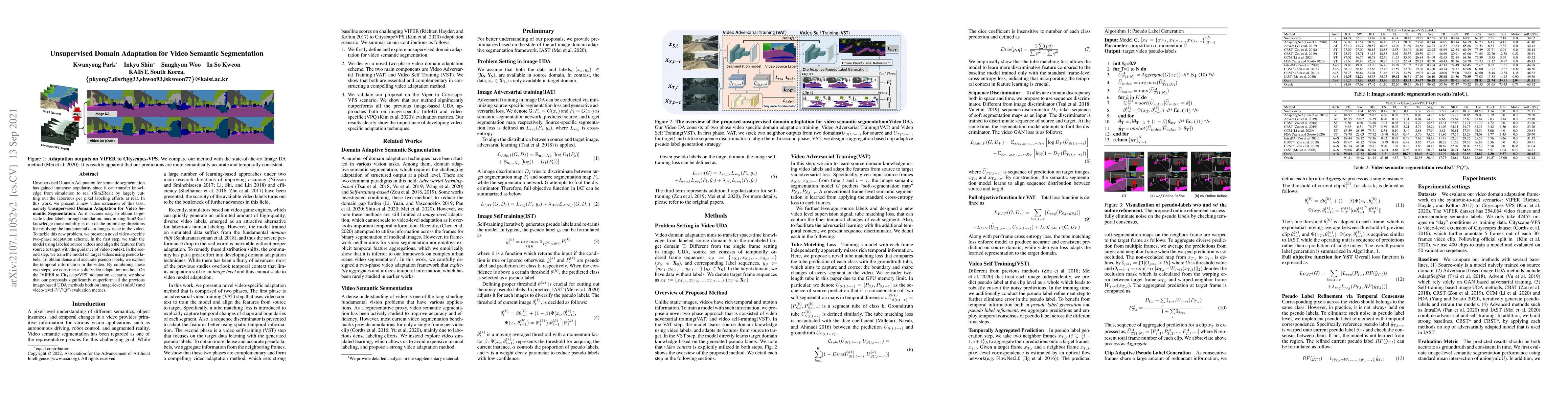 The paper proposes a novel framework for unsupervised domain adaptation (UDA) in video semantic segmentation, consisting of two phases: Video Adversarial Training (VAT) and Video Self-Training (VST). VAT distills source domain knowledge using supervised loss functions and video adversarial training (VAT) to align features from source to target, utilizing video context. VST focuses on the target data, constructing robust pseudo-labels by exploiting temporal information, which has been rarely explored in previous image-based self-training approaches.