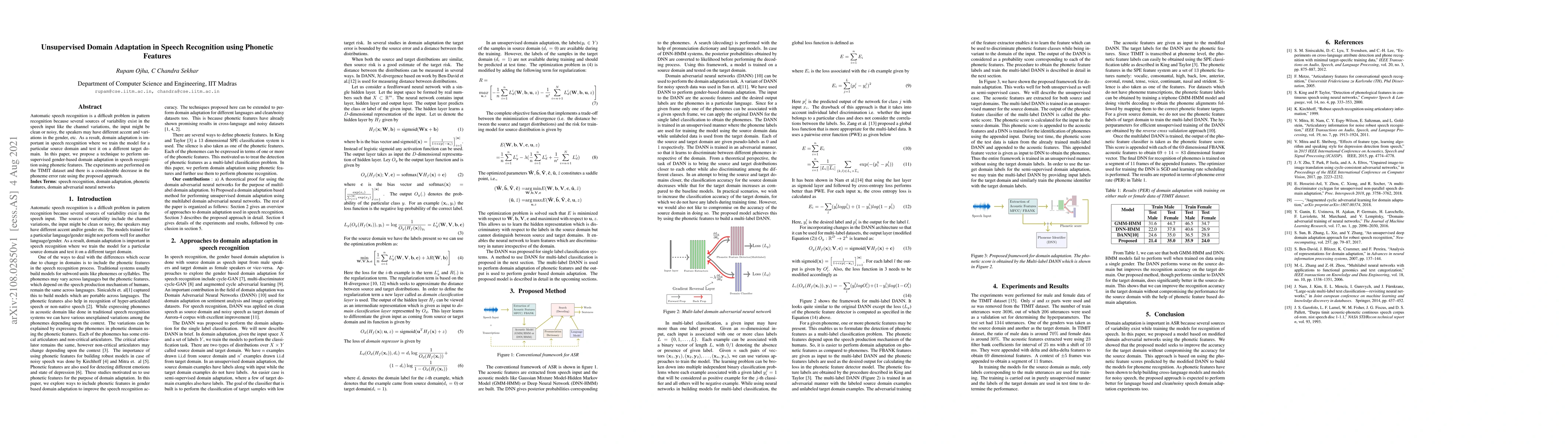 This paper proposes an unsupervised domain adaptation technique for speech recognition using phonetic features to address gender-based domain shifts. Experiments on the TIMIT dataset show a significant reduction in phoneme error rates, demonstrating the effectiveness of the approach.
