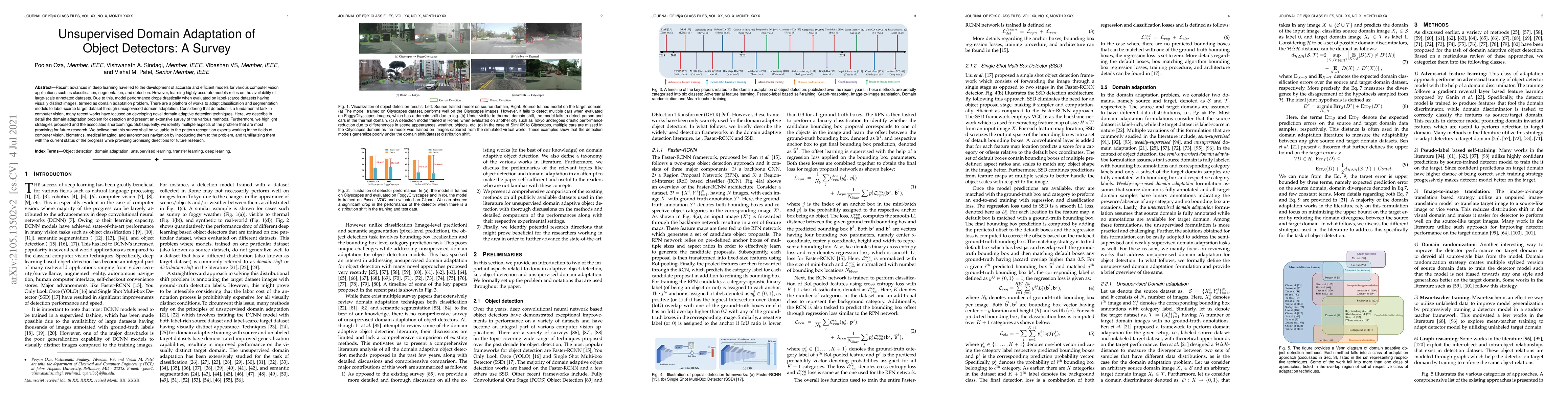 This paper surveys unsupervised domain adaptation techniques for object detectors, addressing the challenge of domain shift in label-scarce datasets. It reviews various methods and highlights their shortcomings, aiming to guide future research directions in computer vision, biometrics, medical imaging, and autonomous navigation.