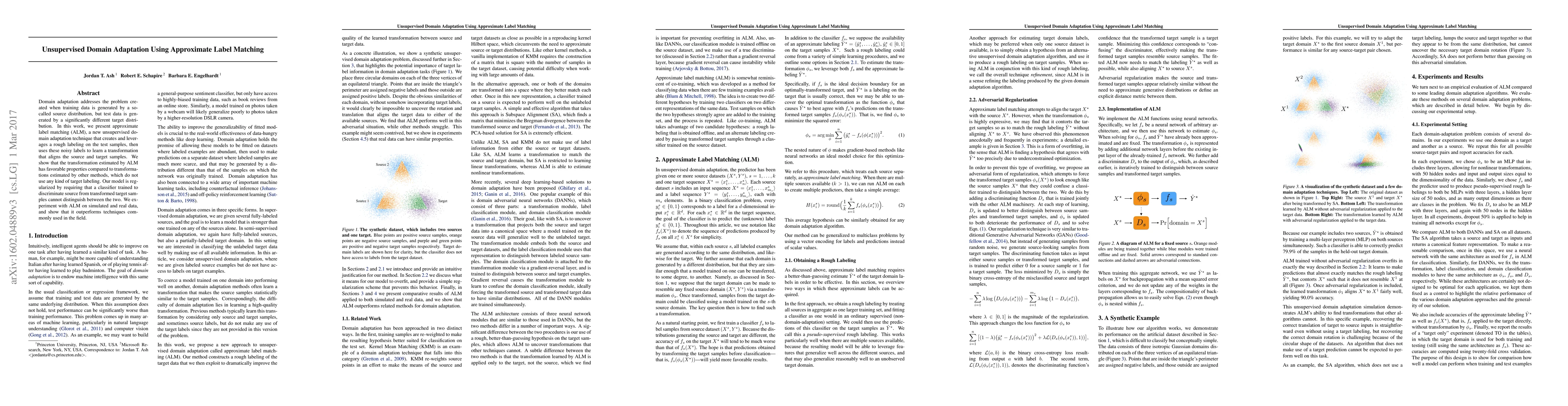 This paper introduces approximate label matching (ALM), an unsupervised domain adaptation technique that leverages rough labeling on test samples to learn a transformation aligning source and target distributions. The method outperforms existing techniques by regularizing the transformation to prevent discrimination between source and transformed target samples.