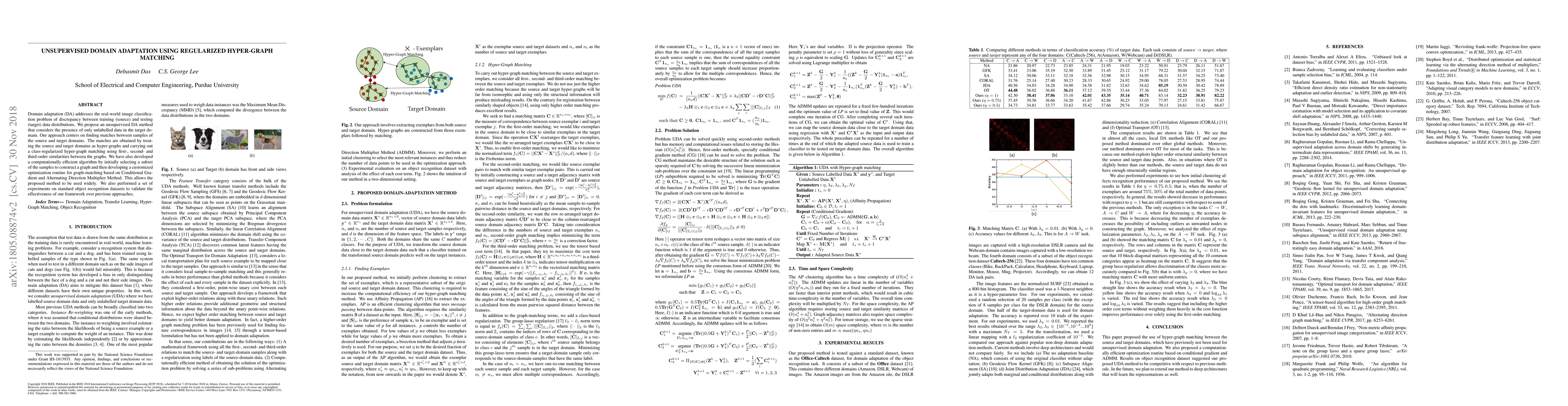 This paper proposes an unsupervised domain adaptation method for image classification that leverages hyper-graph matching to find correspondences between source and target domain samples. The approach uses class-regularized hyper-graph matching and a computationally efficient algorithm based on Conditional Gradient and Alternating Direction Multiplier Method, validated through experiments on standard datasets.