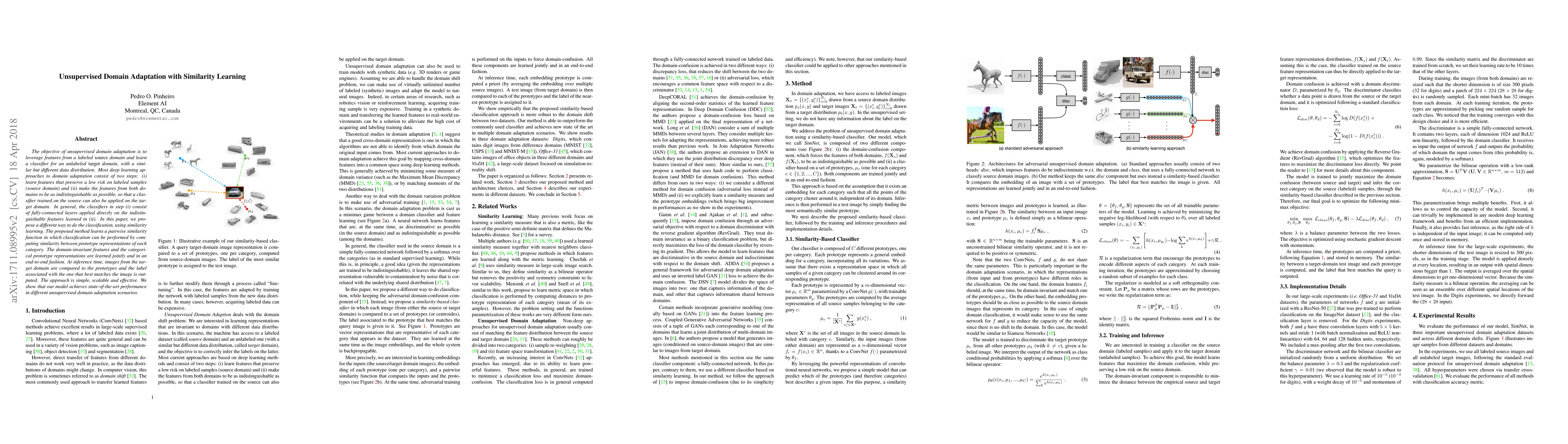 This paper proposes an unsupervised domain adaptation method using similarity learning, where domain-invariant features and categorical prototypes are learned jointly to classify unlabeled target domain data by comparing images to prototype representations. The approach achieves state-of-the-art performance in various domain adaptation scenarios.