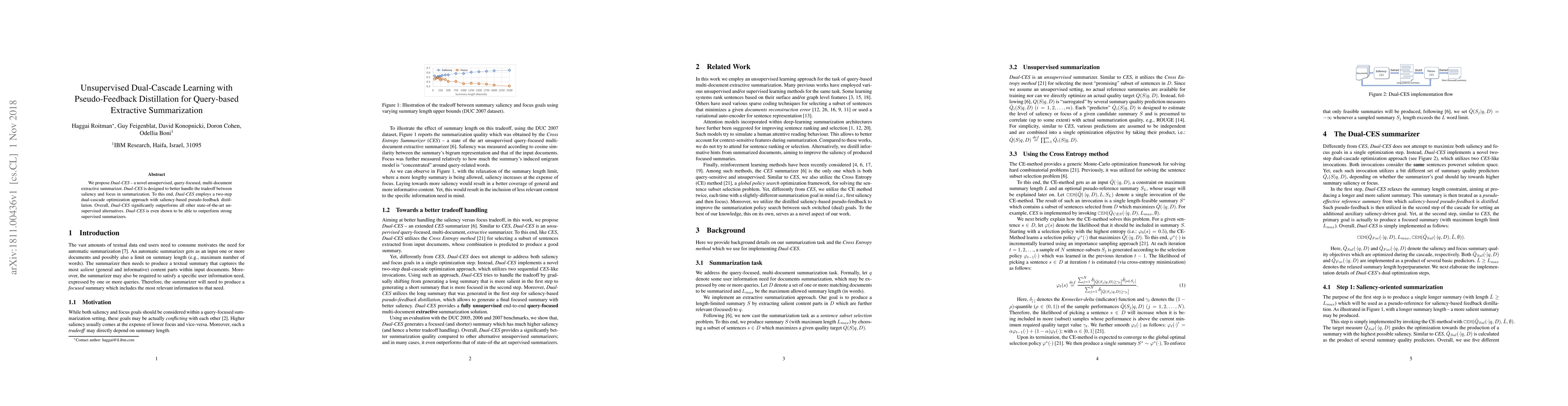 We propose Dual-CES -- a novel unsupervised, query-focused, multi-document extractive summarizer. Dual-CES is designed to better handle the tradeoff between saliency and focus in summarization. To this end, Dual-CES employs a two-step dual-cascade optimization approach with saliency-based pseudo-feedback distillation. Overall, Dual-CES significantly outperforms all other state-of-the-art unsupervised alternatives. Dual-CES is even shown to be able to outperform strong supervised summarizers.