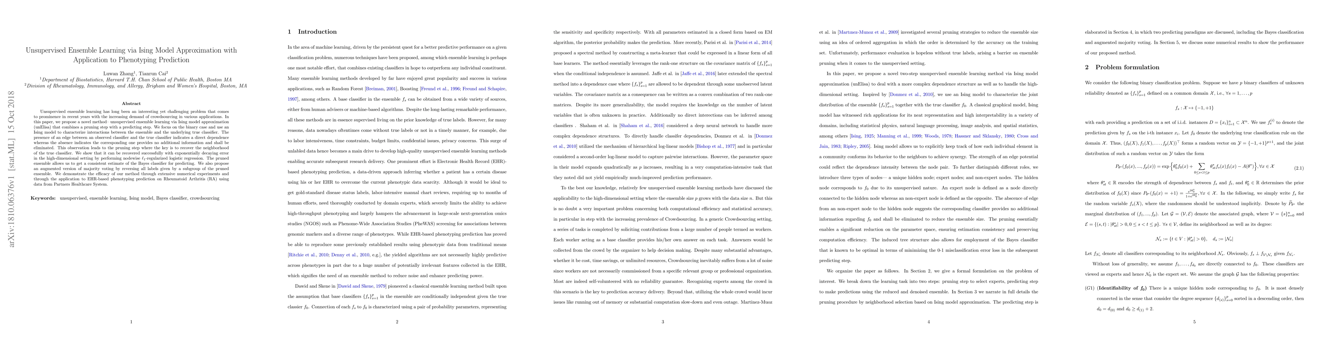 A new method called unElisa is proposed for unsupervised ensemble learning via Ising model approximation, which can effectively prune unnecessary information from the ensemble to improve accuracy in predicting phenotypes.