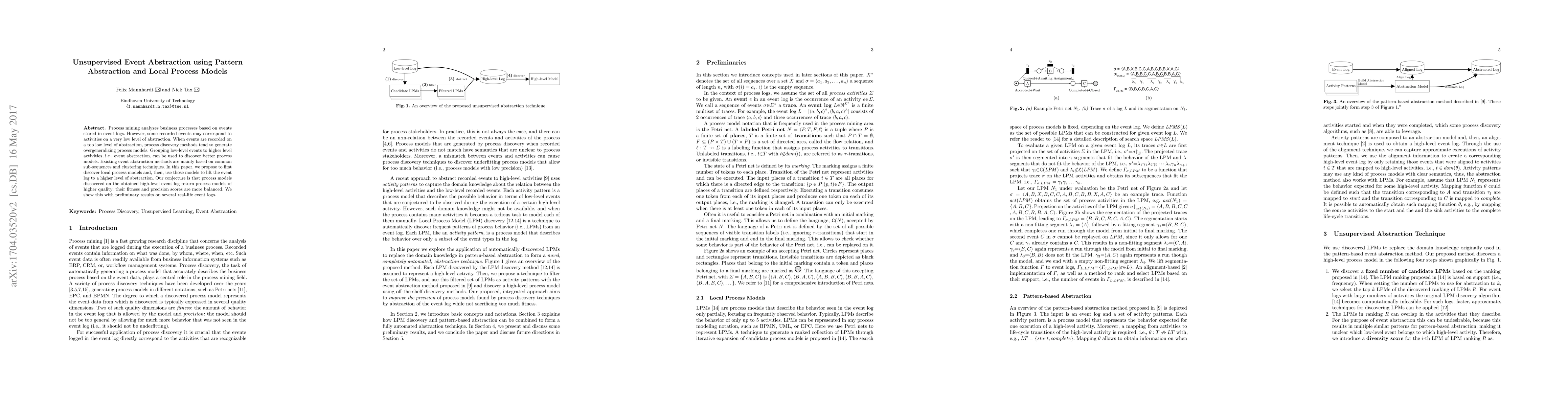 This paper proposes an unsupervised method for event abstraction in process mining by first discovering local process models and then using them to elevate event logs to a higher level of abstraction. Preliminary results suggest this approach yields process models with more balanced fitness and precision scores.