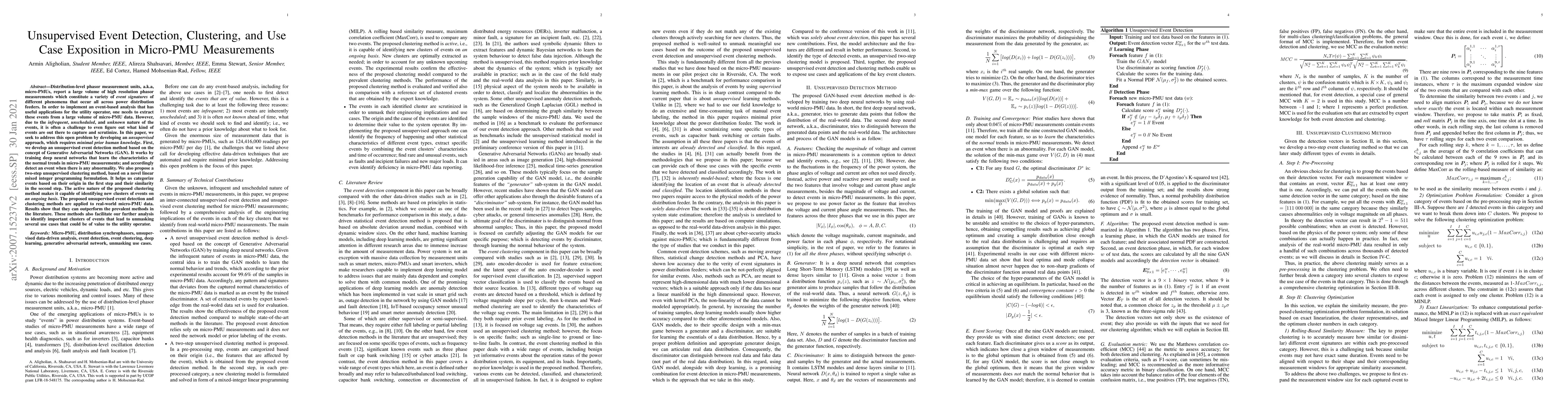 This paper develops an unsupervised approach for detecting and clustering events in micro-PMU measurements using Generative Adversarial Networks and a novel linear mixed integer programming formulation. The method identifies anomalies and categorizes events without prior knowledge, outperforming existing methods and revealing valuable use cases for utility operators.