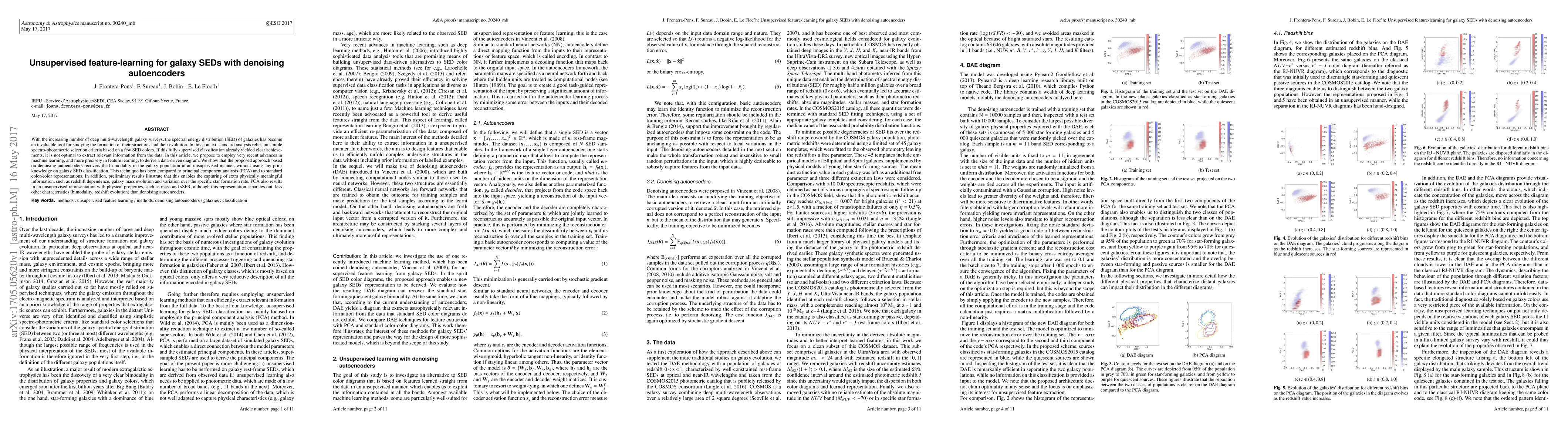Researchers used denoising autoencoders to create an unsupervised feature-learning tool for galaxy spectral energy distributions (SEDs), revealing bi-modality without prior knowledge of SED classification. The approach captured extra physically meaningful information such as redshift dependence and galaxy mass evolution.