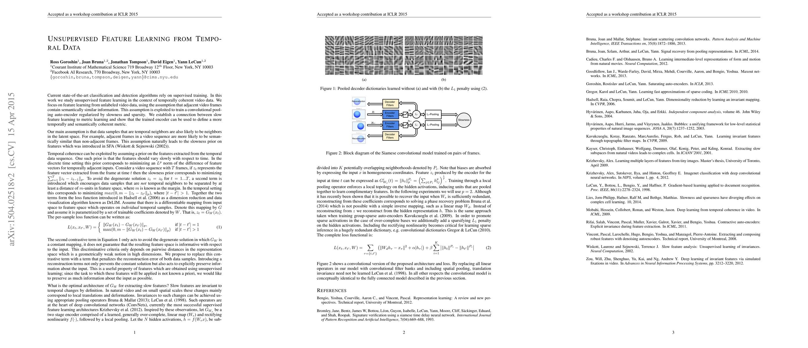 Researchers developed an unsupervised feature learning method for video data, leveraging temporal coherence to train a convolutional pooling auto-encoder that improves metric learning and semantic coherence.