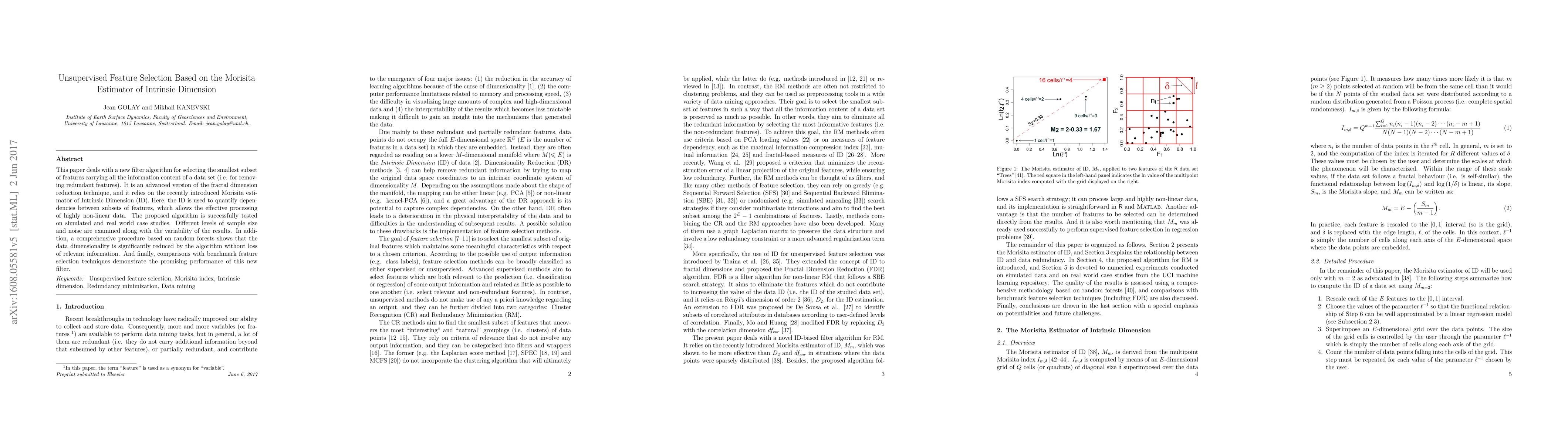 This paper deals with a new filter algorithm for selecting the smallest subset of features carrying all the information content of a data set (i.e. for removing redundant features). It is an advanced version of the fractal dimension reduction technique, and it relies on the recently introduced Morisita estimator of Intrinsic Dimension (ID). Here, the ID is used to quantify dependencies between subsets of features, which allows the effective processing of highly non-linear data. The proposed algorithm is successfully tested on simulated and real world case studies. Different levels of sample size and noise are examined along with the variability of the results. In addition, a comprehensive procedure based on random forests shows that the data dimensionality is significantly reduced by the algorithm without loss of relevant information. And finally, comparisons with benchmark feature selection techniques demonstrate the promising performance of this new filter.