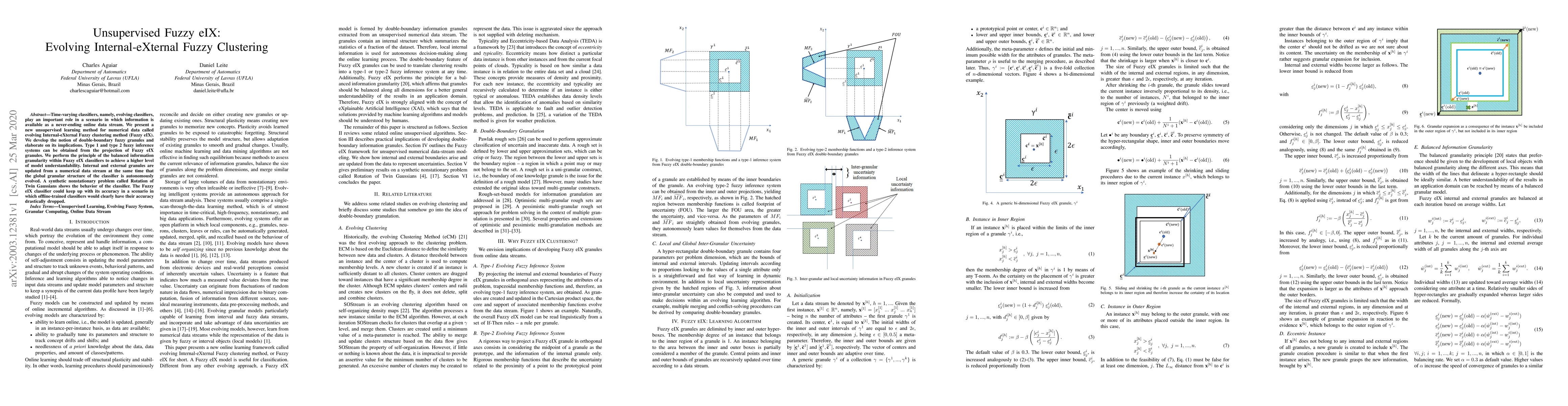 Time-varying classifiers, namely, evolving classifiers, play an important role in a scenario in which information is available as a never-ending online data stream. We present a new unsupervised learning method for numerical data called evolving Internal-eXternal Fuzzy clustering method (Fuzzy eIX). We develop the notion of double-boundary fuzzy granules and elaborate on its implications. Type 1 and type 2 fuzzy inference systems can be obtained from the projection of Fuzzy eIX granules. We perform the principle of the balanced information granularity within Fuzzy eIX classifiers to achieve a higher level of model understandability. Internal and external granules are updated from a numerical data stream at the same time that the global granular structure of the classifier is autonomously evolved. A synthetic nonstationary problem called Rotation of Twin Gaussians shows the behavior of the classifier. The Fuzzy eIX classifier could keep up with its accuracy in a scenario in which offline-trained classifiers would clearly have their accuracy drastically dropped.