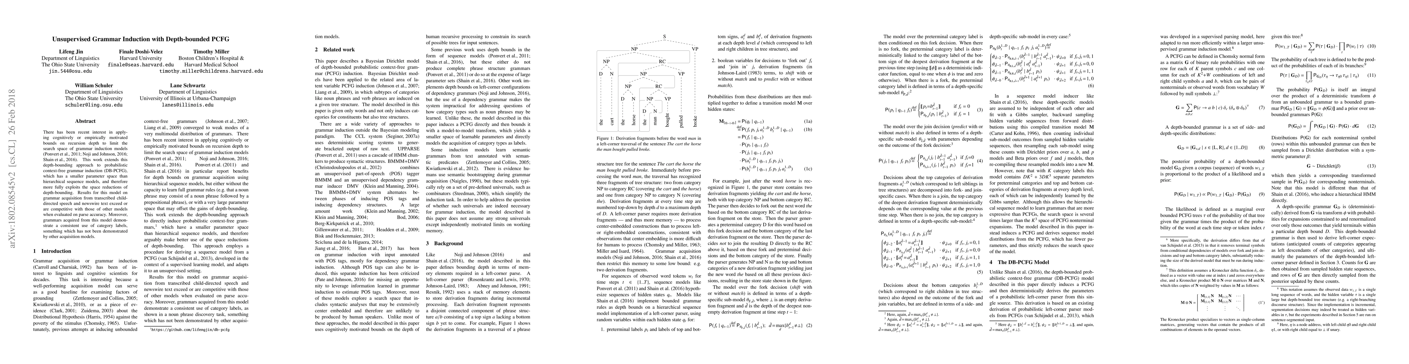 This paper proposes depth-bounded probabilistic context-free grammar (DB-PCFG) induction to constrain recursion depth, resulting in a smaller parameter space and better performance on grammar acquisition tasks compared to other models, as evidenced by parse accuracy and consistent use of category labels.