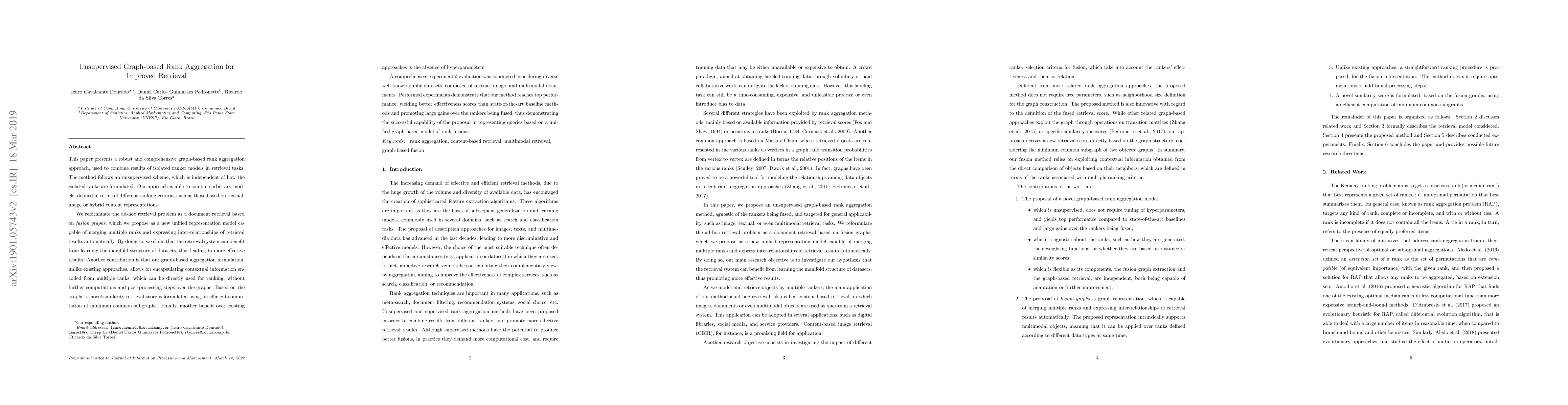 This paper introduces an unsupervised graph-based rank aggregation method for combining results from various isolated ranker models in retrieval tasks. The proposed fusion graphs model enables the integration of ranks based on different criteria and contextual information without requiring hyperparameters, leading to superior retrieval performance on diverse datasets.